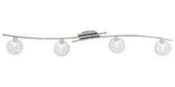 This ceiling lamp features a sleek satin‑nickel steel bar with clear glass and aluminium shades arranged along a 1130 mm length for bright, even coverage in larger rooms and corridors. Mounting close to the ceiling with a 165 mm projection, it includes four G9 halogen capsules rated 33 W each, delivering 450 lm per source of warm‑white 2700 K light on 220–240 V mains. Built to IP20 and Protection Class I, it provides reliable indoor performance with a refined, contemporary look.