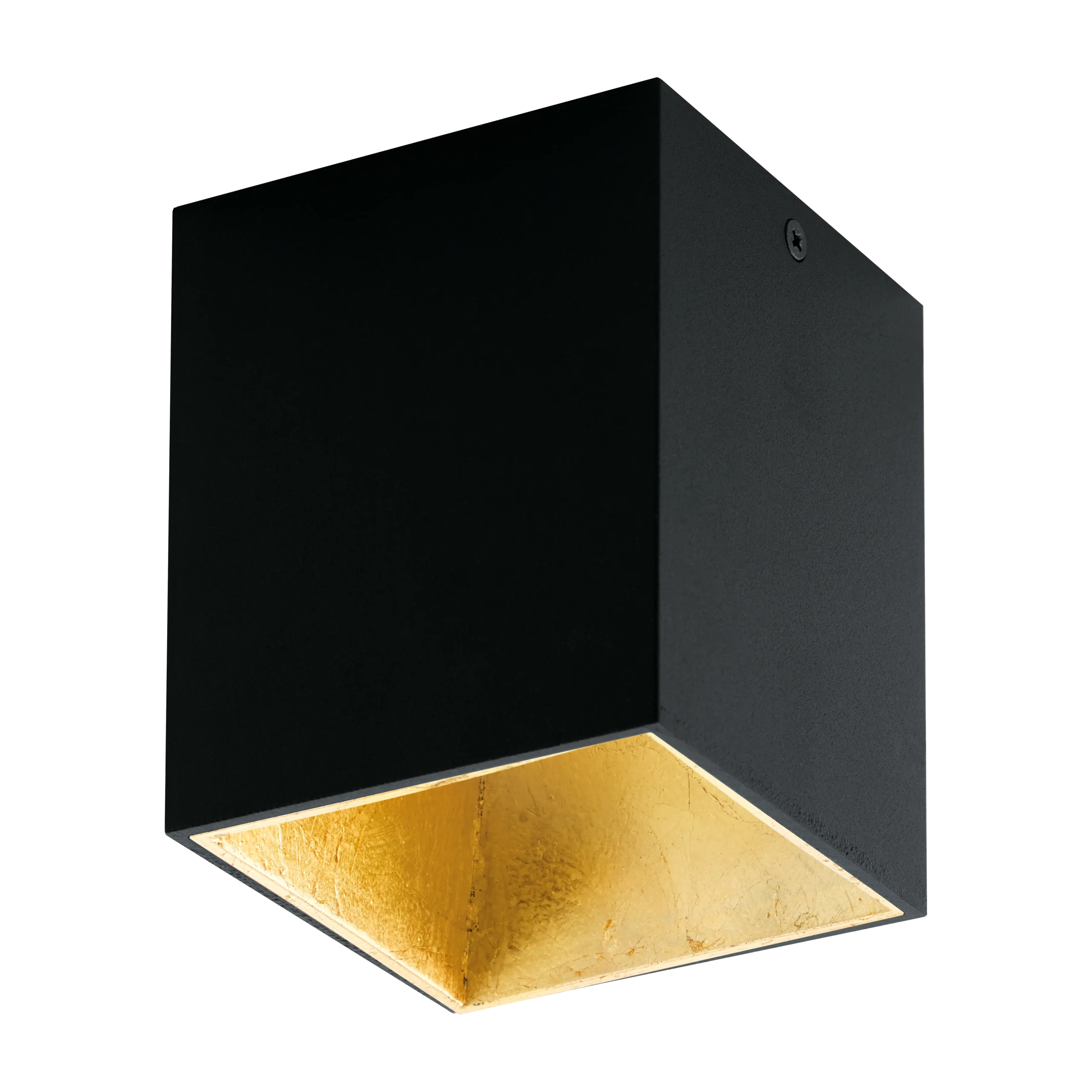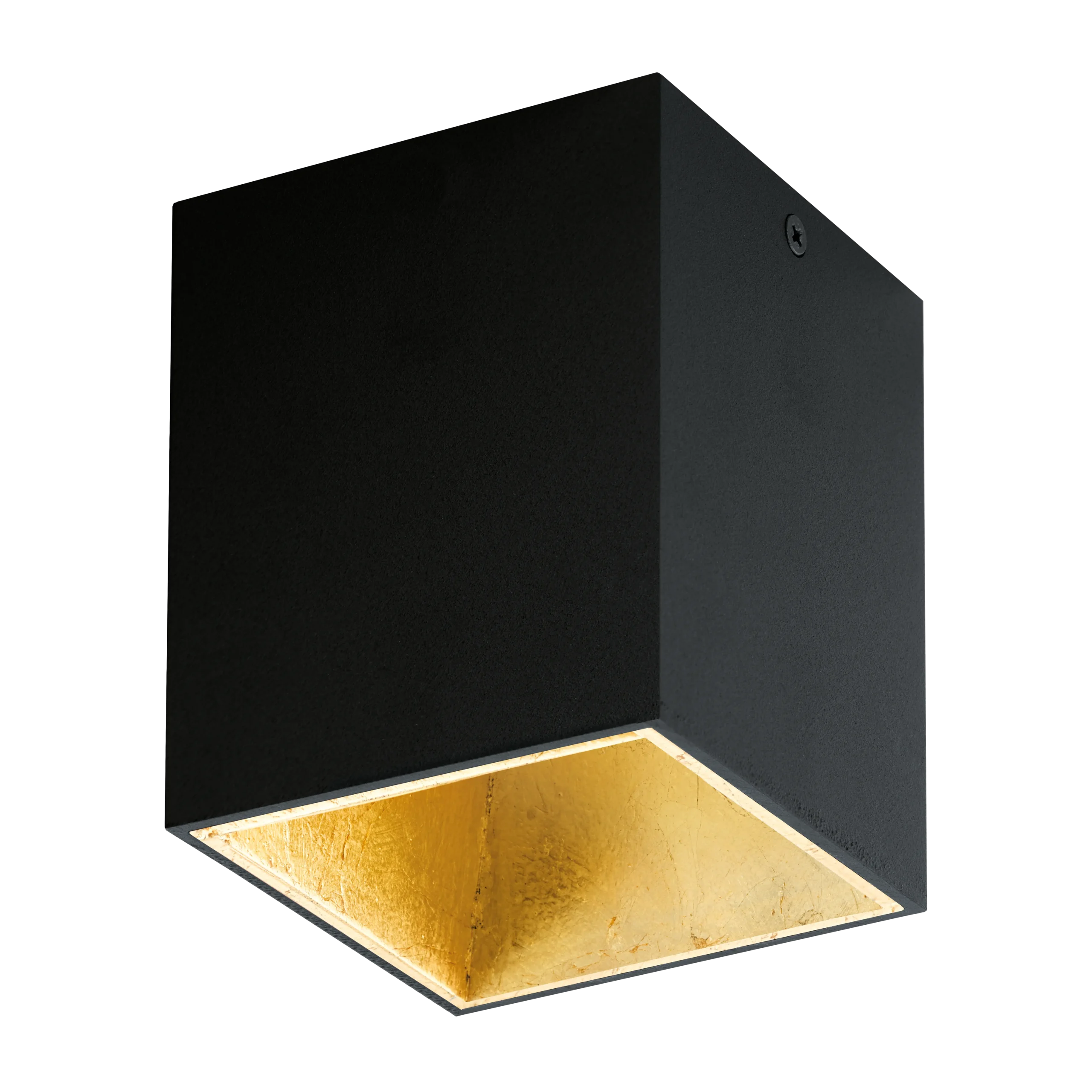 Sleek minimalist cube design – Black aluminium–plastic housing with a warm gold-toned interior adds depth and chic style to modern kitchens, hallways, or bedrooms.