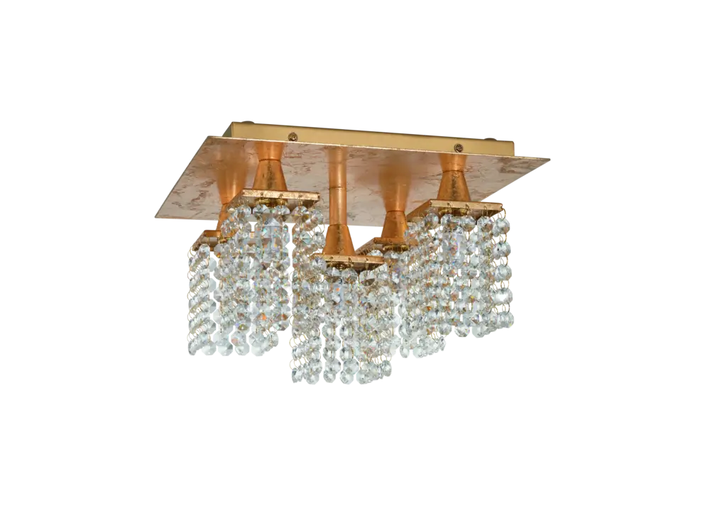 Luxurious Gold & Crystal Design – Mounted on a sleek square gold-steel plate, five G9 LED pods cascade clear crystal accents for a glamorous modern aesthetic suited to living rooms, foyers, or bedrooms.