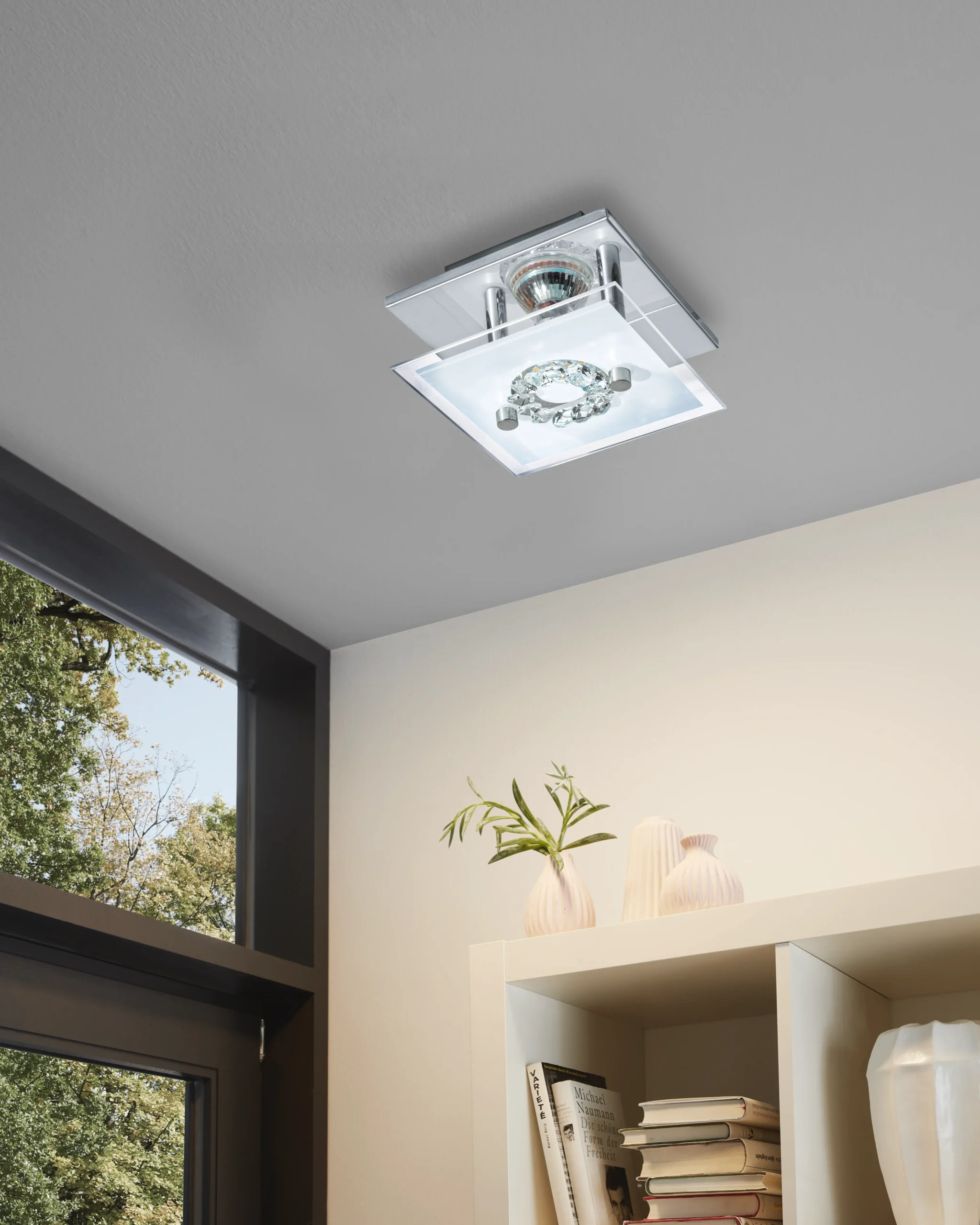 Elegant chrome & glass square fixture – Constructed from robust stainless steel with brilliant and satin glass shades, radiating a sleek, contemporary look suitable for entryways, kitchens, or hallways.