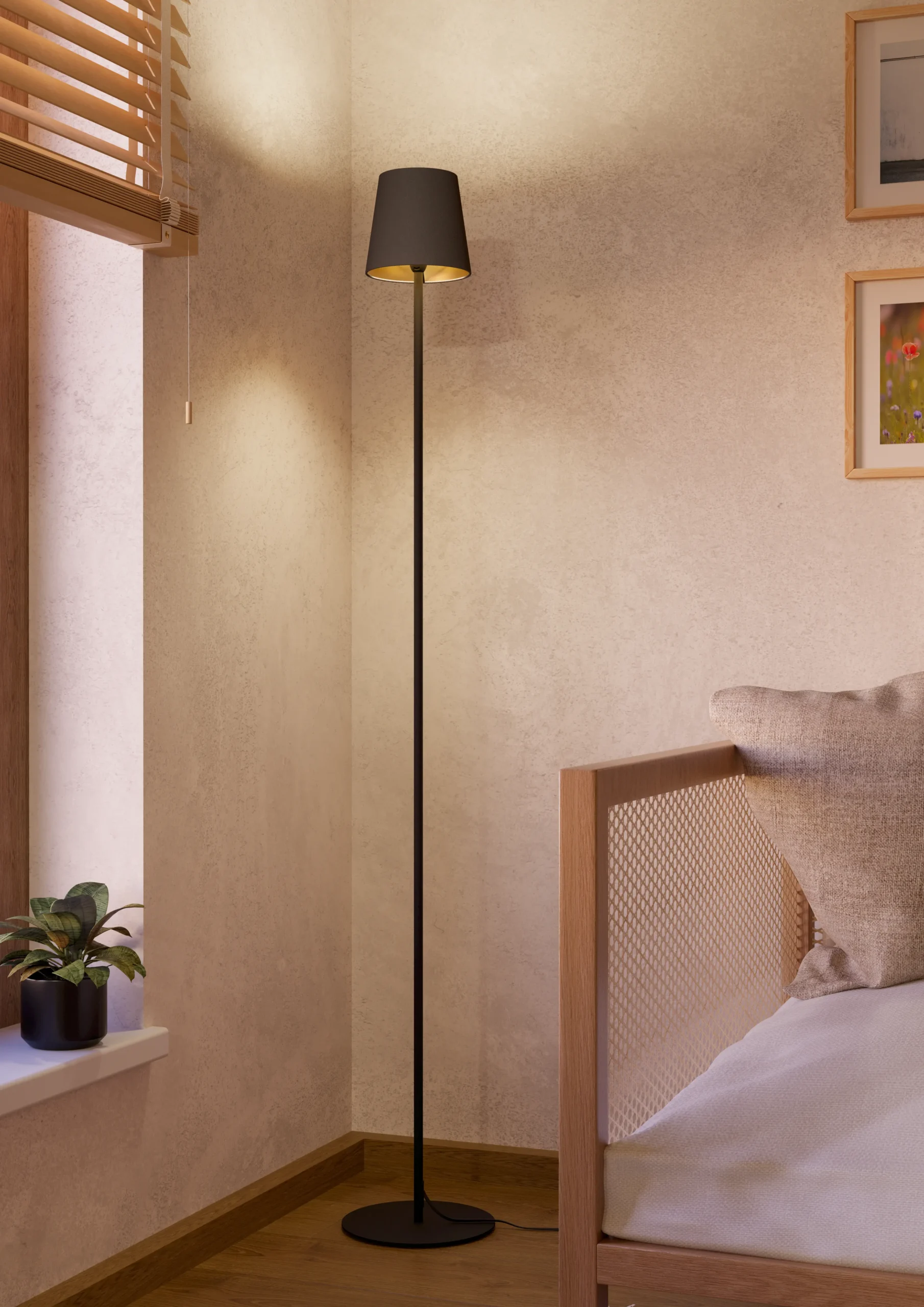 Perfect proportion for floor placement – Stands 1,405mm (55.3″) tall with a 150mm (5.9″) shade and 220mm (8.7″) round base—ideal for tall ceilings or beside sofas and chairs.