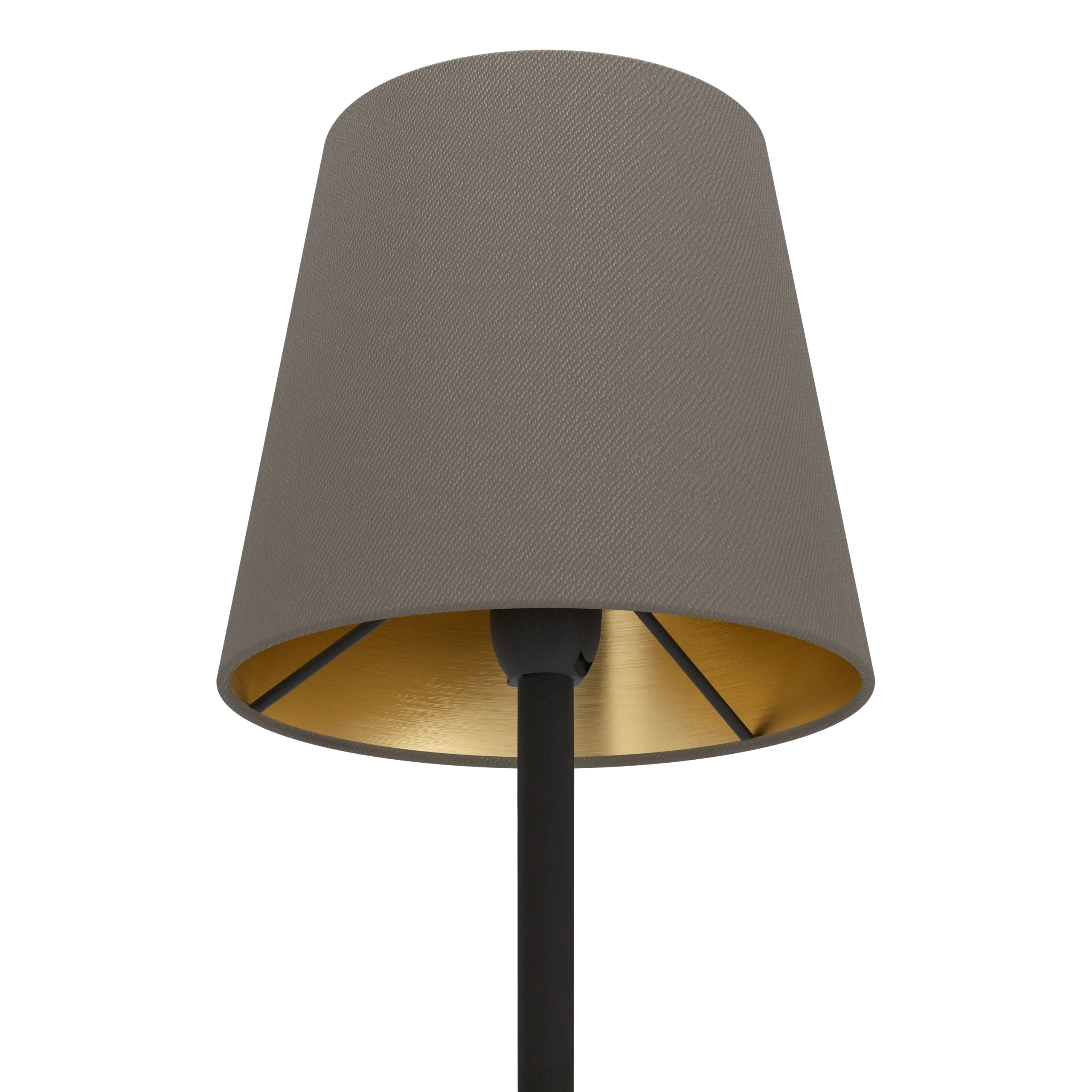 Chic, modern design – Sleek black steel stem topped with a cappuccino‑gold fabric shade brings a warm, sophisticated touch to living rooms, reading nooks, or offices.