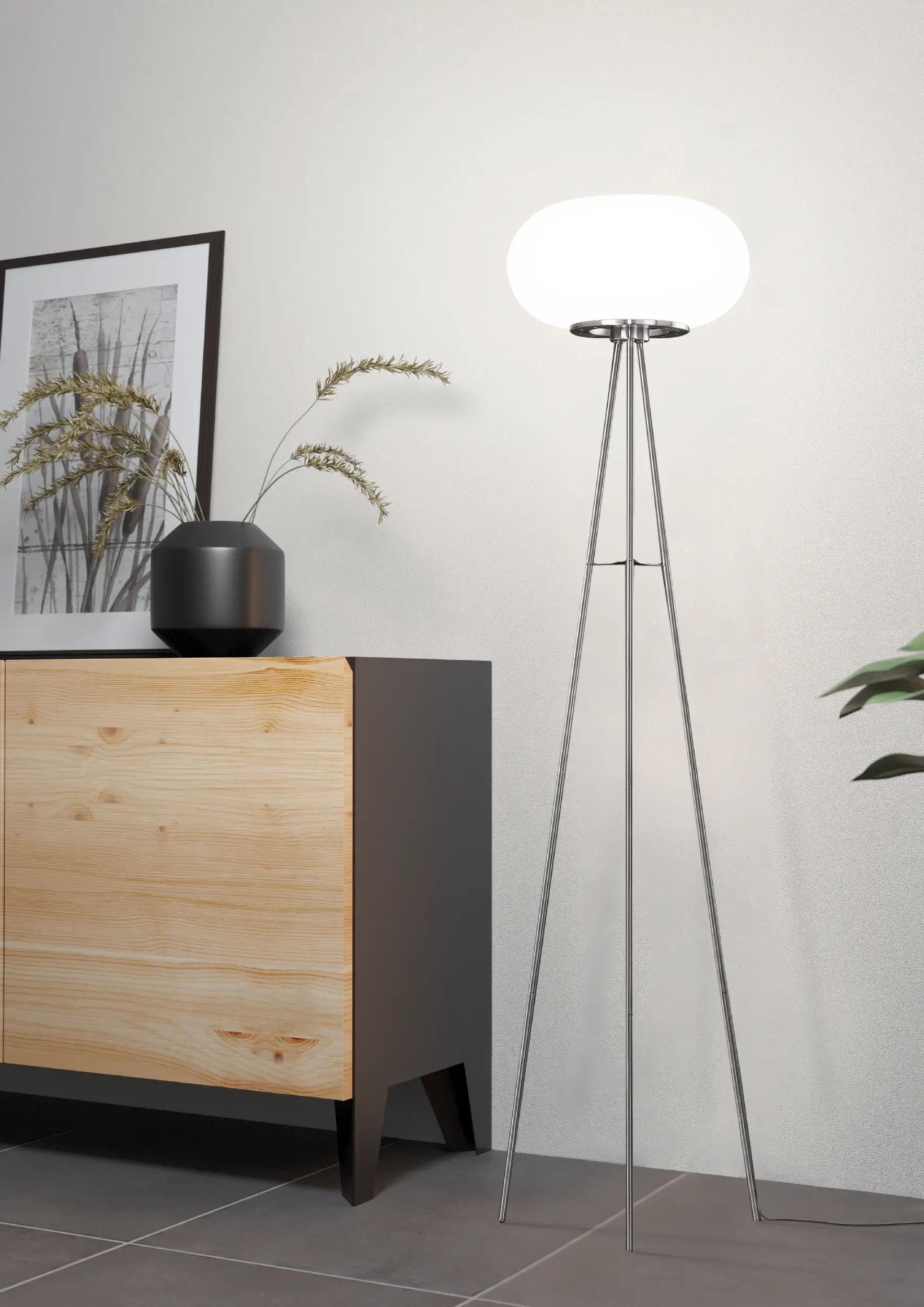 The EGLO OPTICA Floor Lamp (86817) is a sophisticated lighting solution that combines simplicity, elegance, and functionality. Standing 1570 mm tall with a 375 mm diameter, this lamp features a durable steel body in a refined satin nickel finish, paired with a white matte-opal glass shade that diffuses light beautifully to create a warm, inviting atmosphere. Its foot-switch control ensures easy operation and everyday convenience. Compatible with E27 bulbs (max 60W), the lamp allows you to personalize brightness and color temperature based on your preference. Ideal for living rooms, bedrooms, or offices, the OPTICA Floor Lamp operates safely on 220–240V, 50/60Hz, and includes IP20 protection and Class II insulation for reliable indoor use. Blending sleek design with soft ambient lighting, the OPTICA adds understated sophistication to any space.