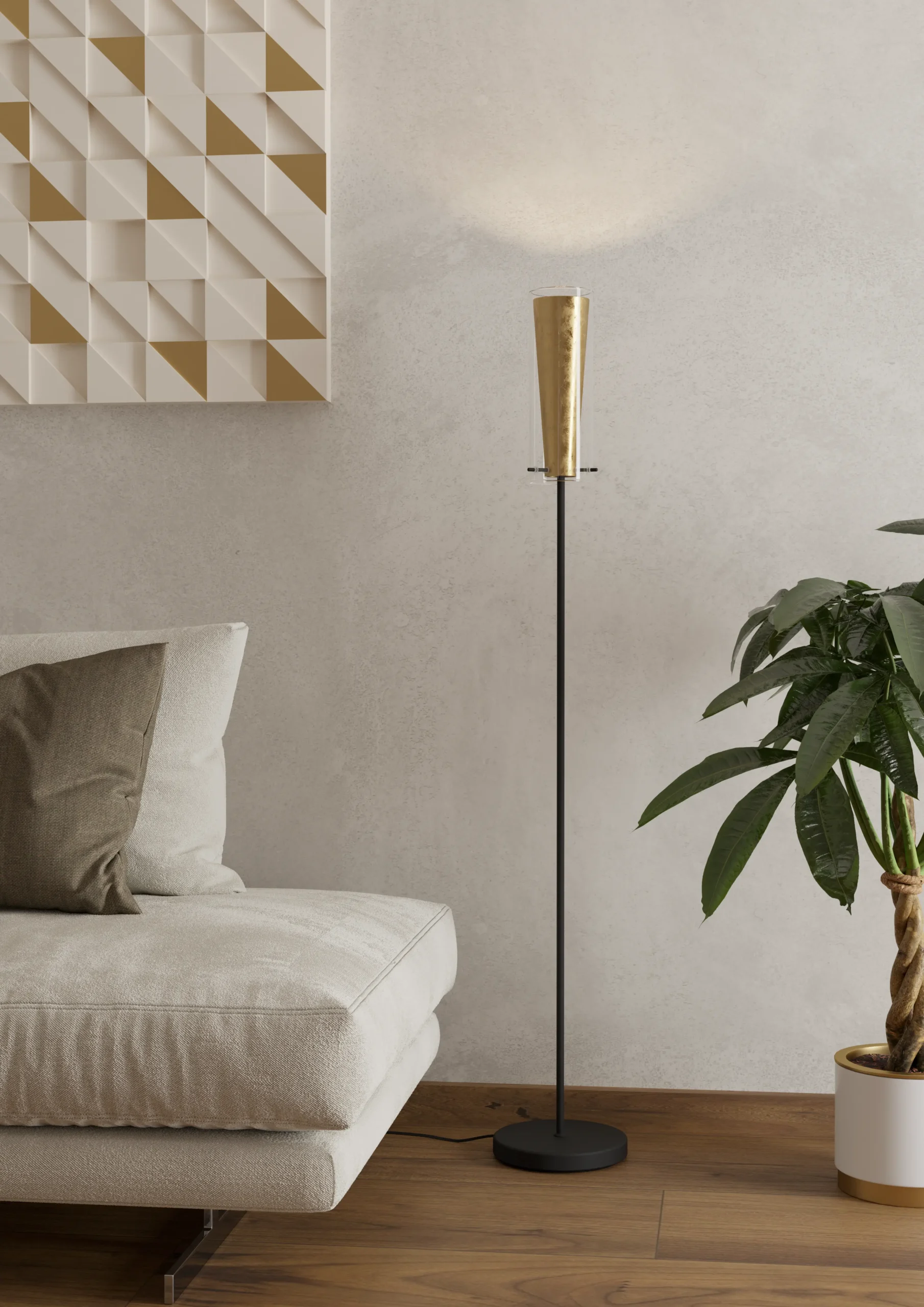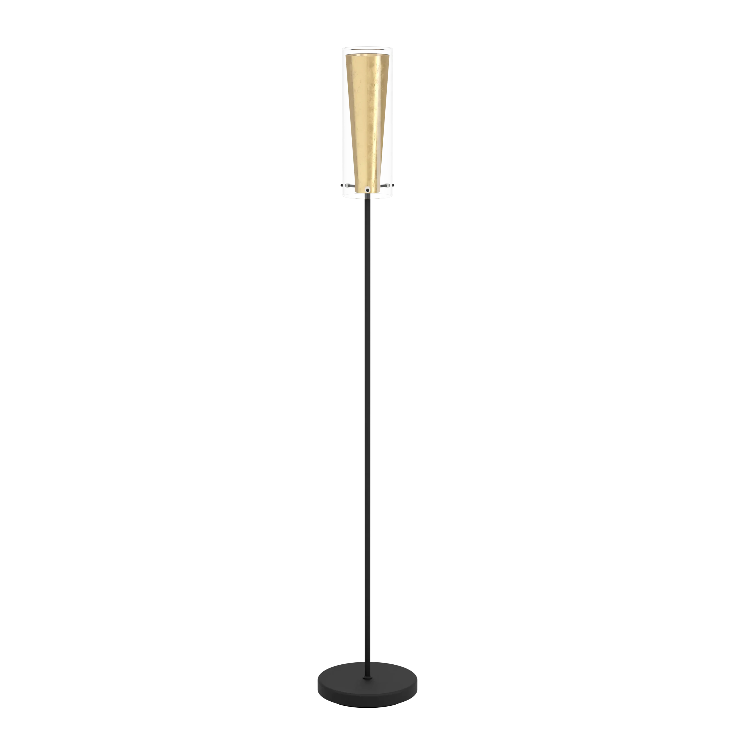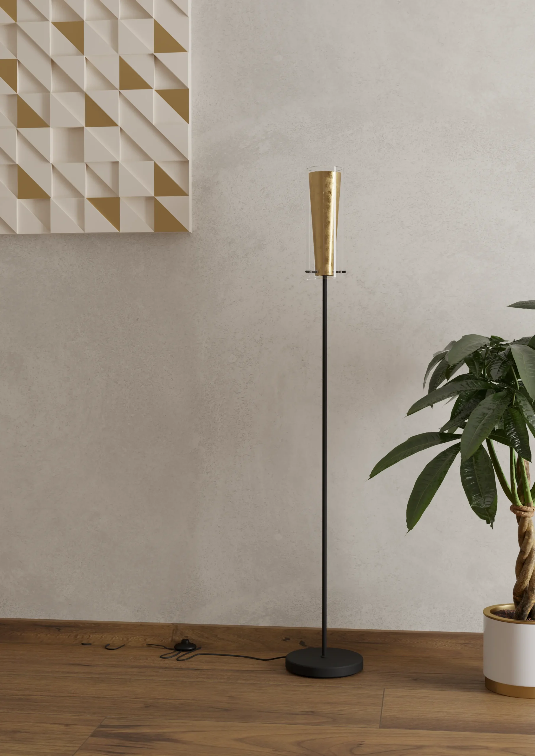 PINTO GOLD Floor Lamp – Black Steel Base with Dual Glass Shades (Clear Outer & Gold Inner) – E27 Socket – Foot Switch – Modern Elegant Design – Ideal for Living Room, Bedroom, or Office – 2-Year Warranty