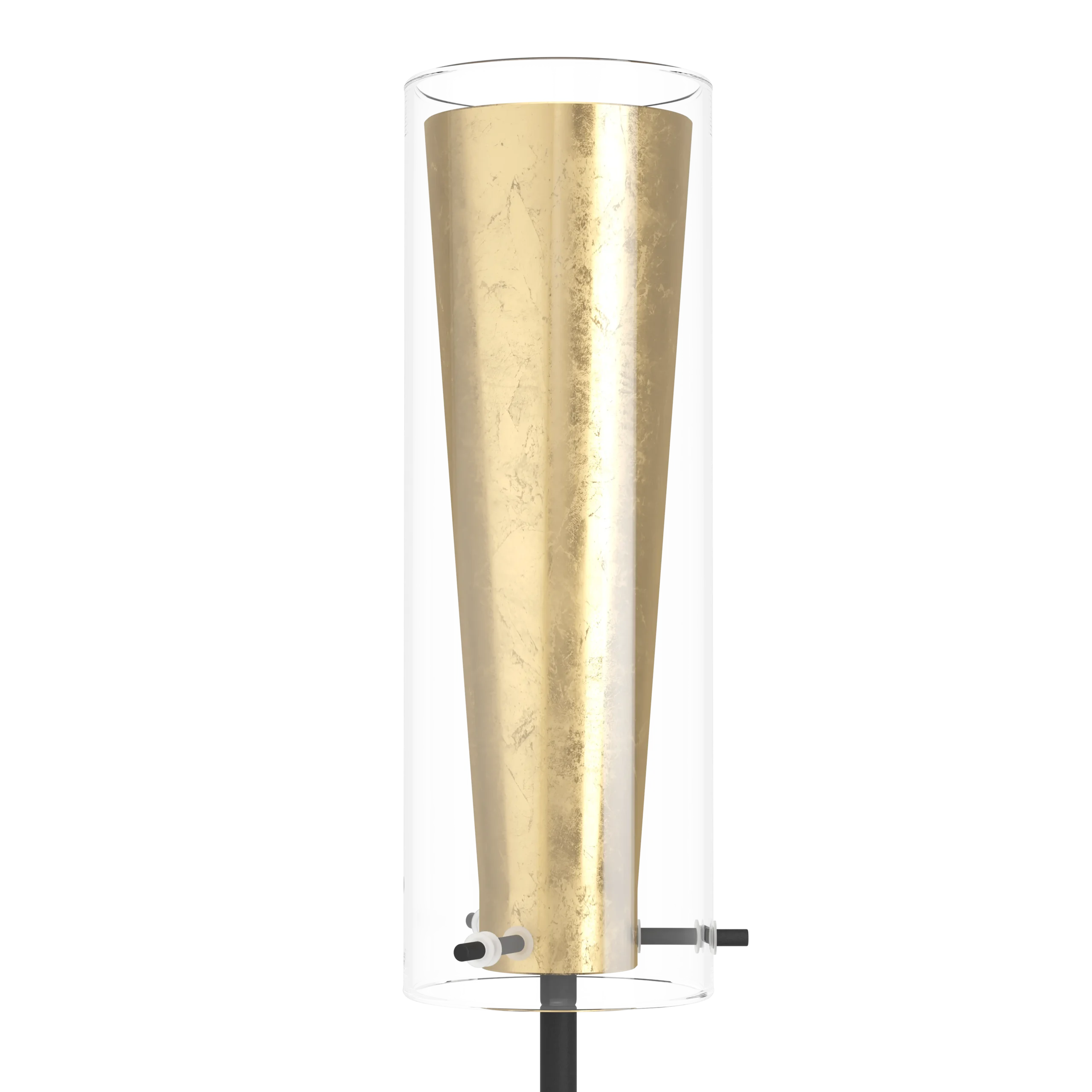Modern Elegant Design: Features a sleek black steel base paired with a dual glass shade—clear outer and gold inner—offering a sophisticated aesthetic that complements various interior styles.