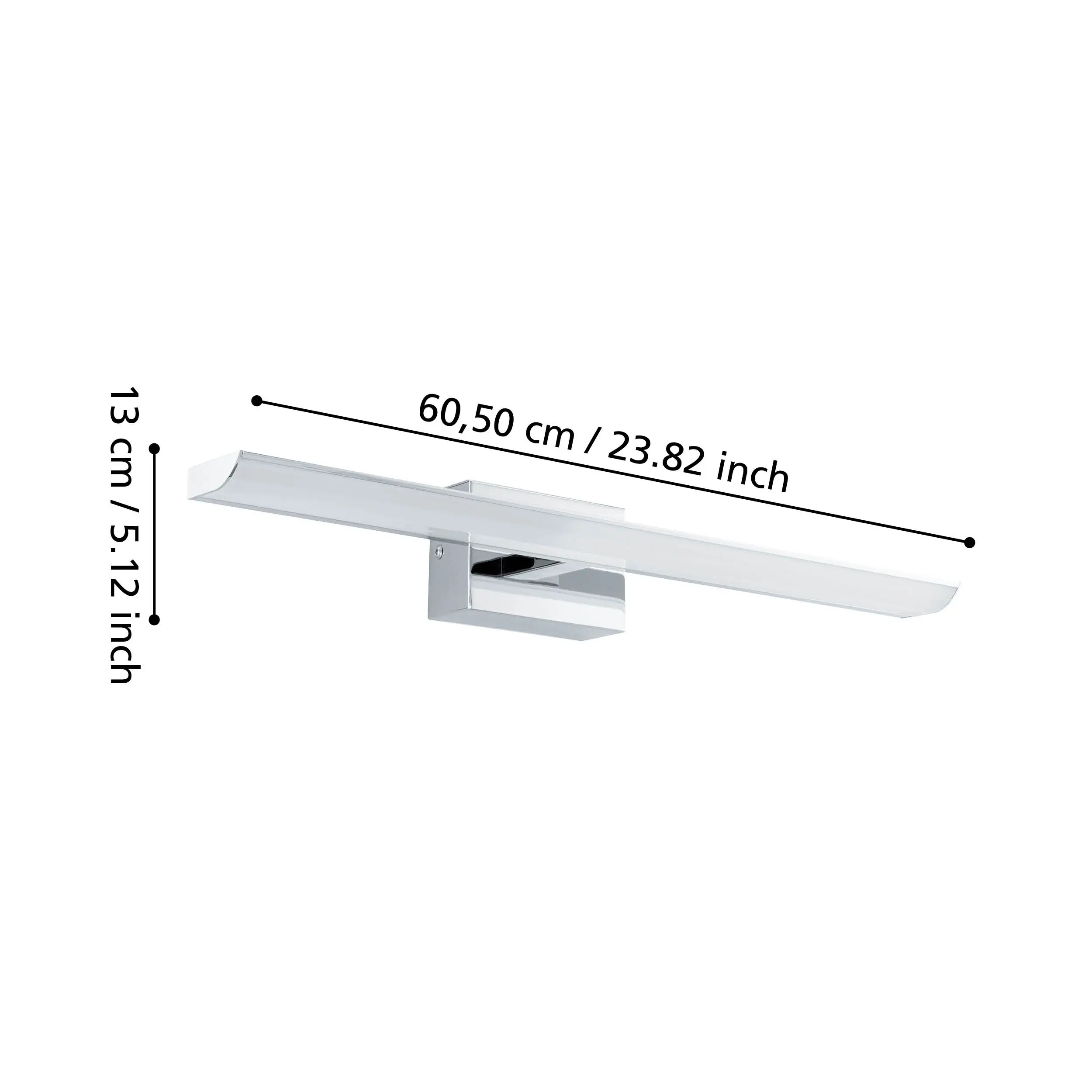 Stylish chrome & white look – Sleek steel housing in polished chrome with a clean white plastic shade blends seamlessly with modern vanities.