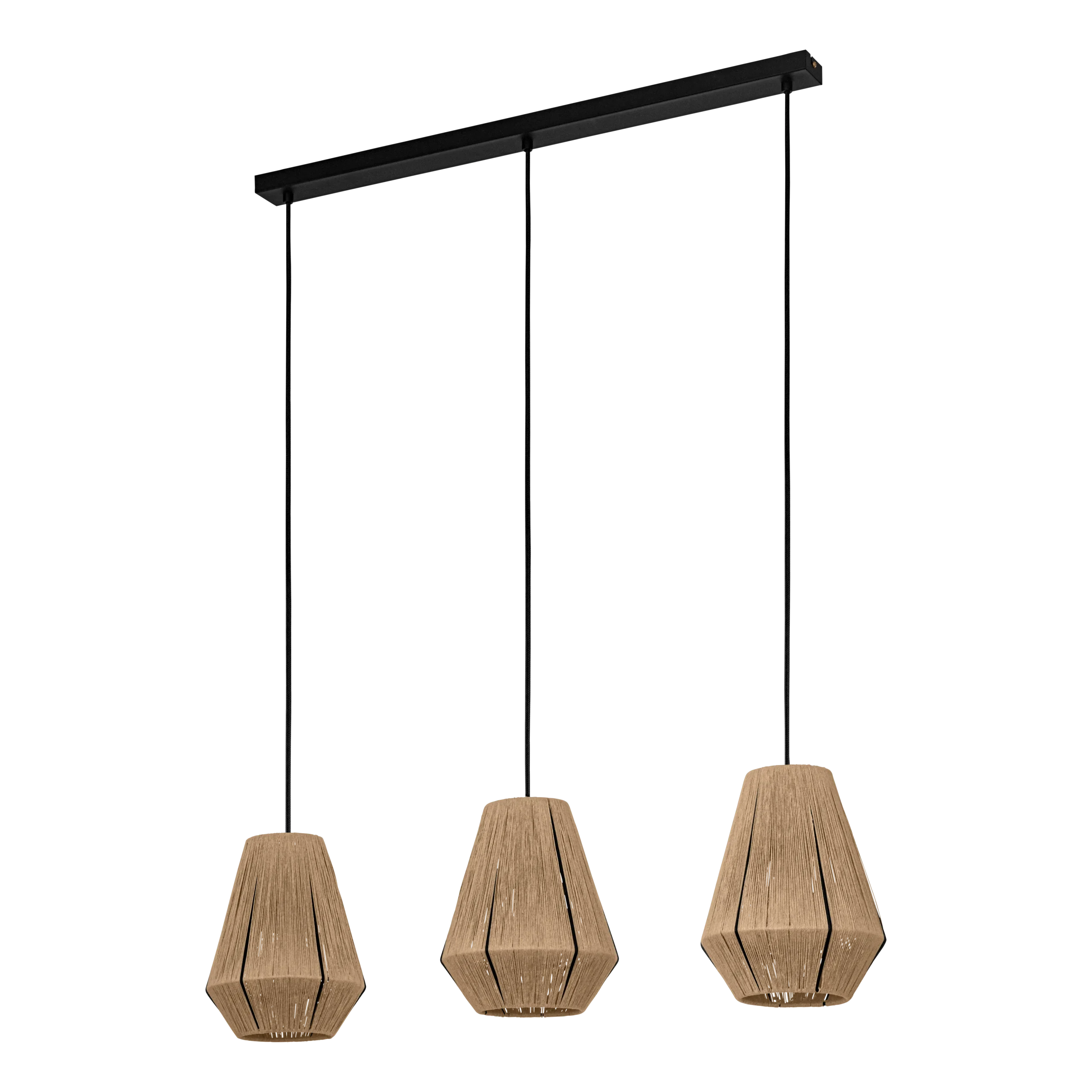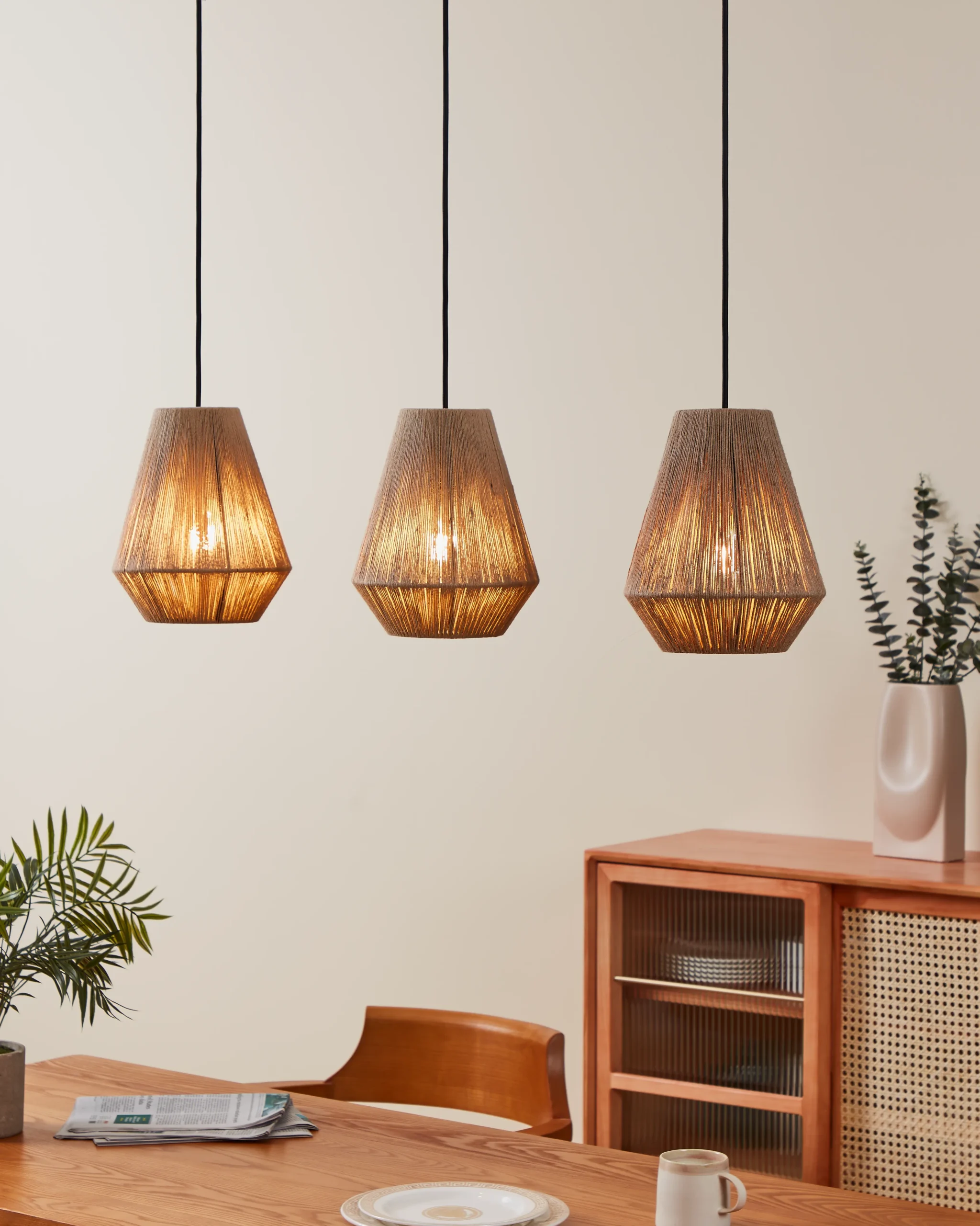 Vintage Design: Features three diamond-shaped wire frames wrapped in natural textile thread, combining black steel with natural shades for a warm, vintage aesthetic.
