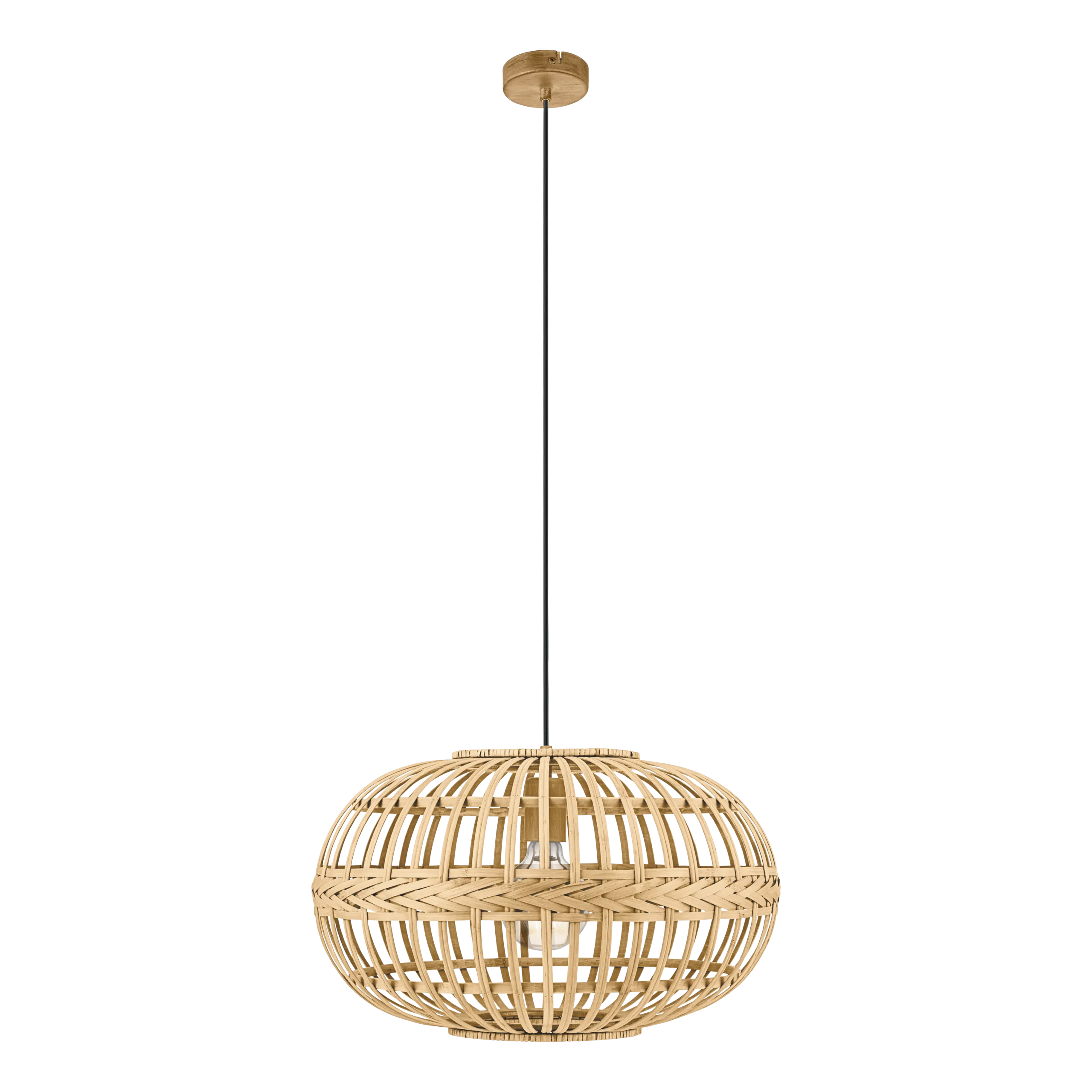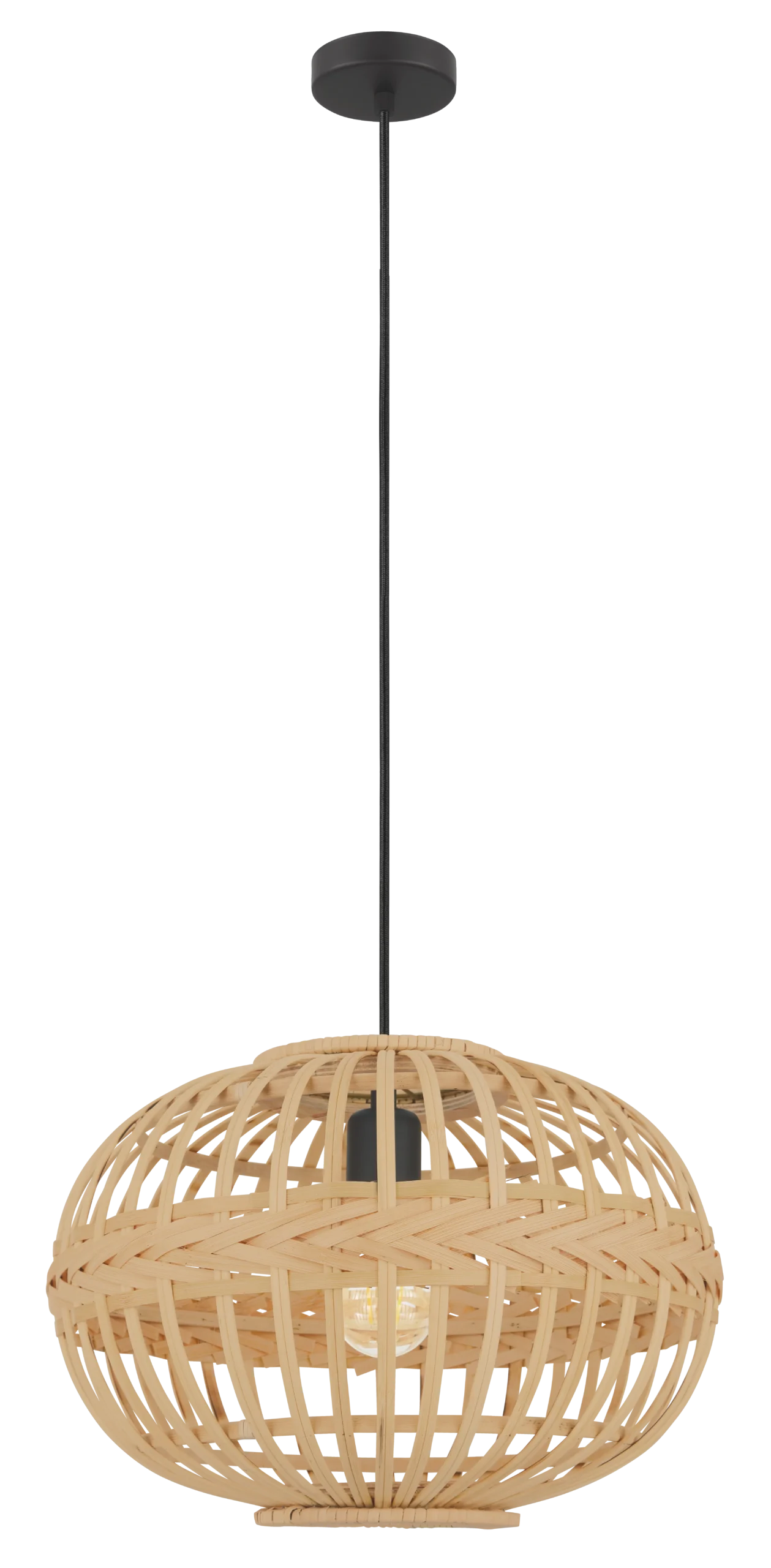 AMSFIELD 1 Pendant Light – Brown Wood Oval Shade on Black Steel Cable – E27 Socket – 84″ Adjustable Cord – Scandinavian Vintage Accent Lighting – 1‑Year Warranty