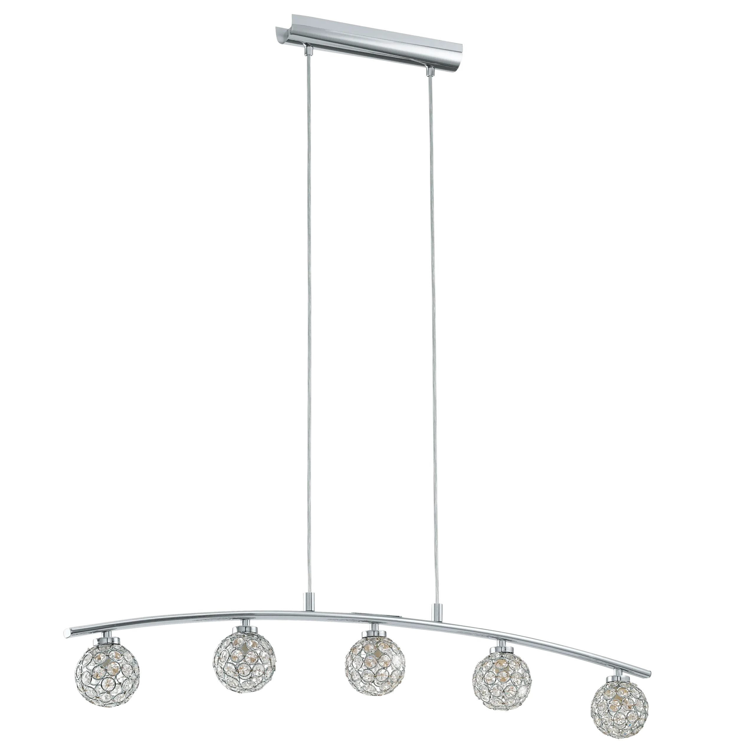 BERAMO 1 pendant light stands out with a chrome steel structure complemented by a clear brilliant glass shade. It features five 33W G9 halogen lamps delivering warm white light at 2700K, ideal for creating cozy atmospheres in indoor living spaces. The pendant’s 1100 mm height and 905 mm length provide substantial presence while maintaining an elegant profile.