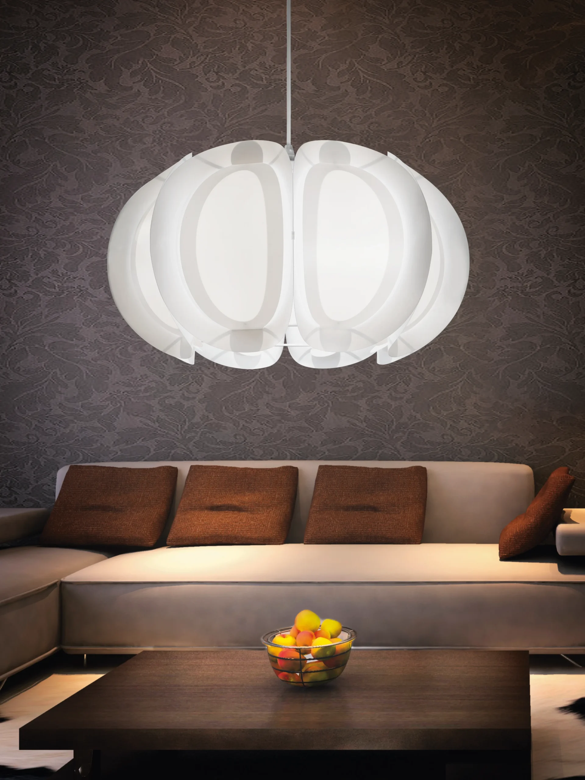 BERCEDO 12 is a minimalist pendant light designed for indoor applications featuring a white plastic enclosure and a white film shade that diffuses light softly. It supports a 60W lamp with an E27 socket, suitable for general lighting purposes. Its simple yet modern design fits a variety of contemporary living and working spaces.