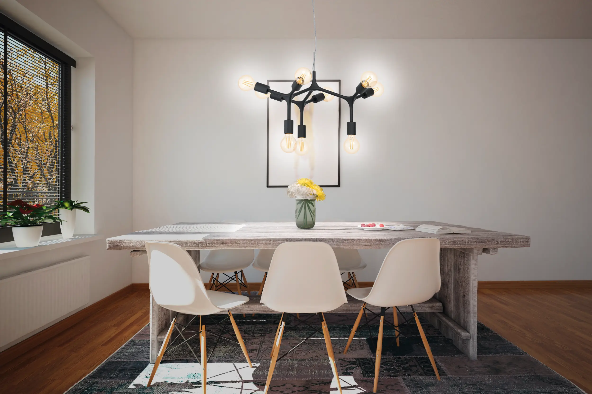 Nine independent E27 sockets accommodate bulbs up to 60W each (LED, filament, dimmable, etc.), giving full customization over brightness and ambience.