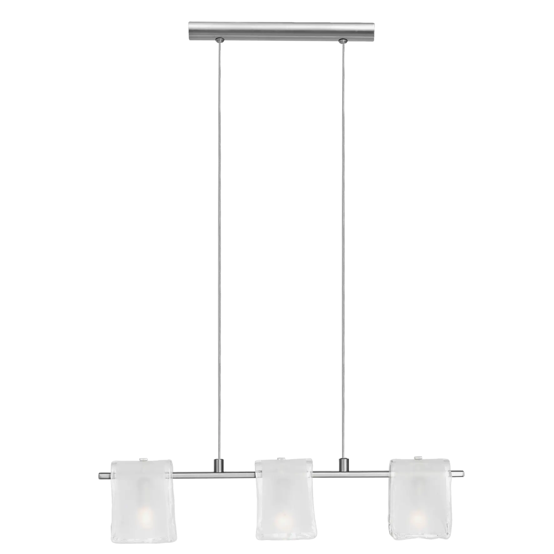 BOGOTA 3‑Lamp Pendant – Satin Nickel Steel with White Satin Glass, 3×G9 Halogen Bulbs Included (3×40W, 590lm Each), 1100×580×80mm, 2700K Warm White, IP20, 2‑Year Warranty