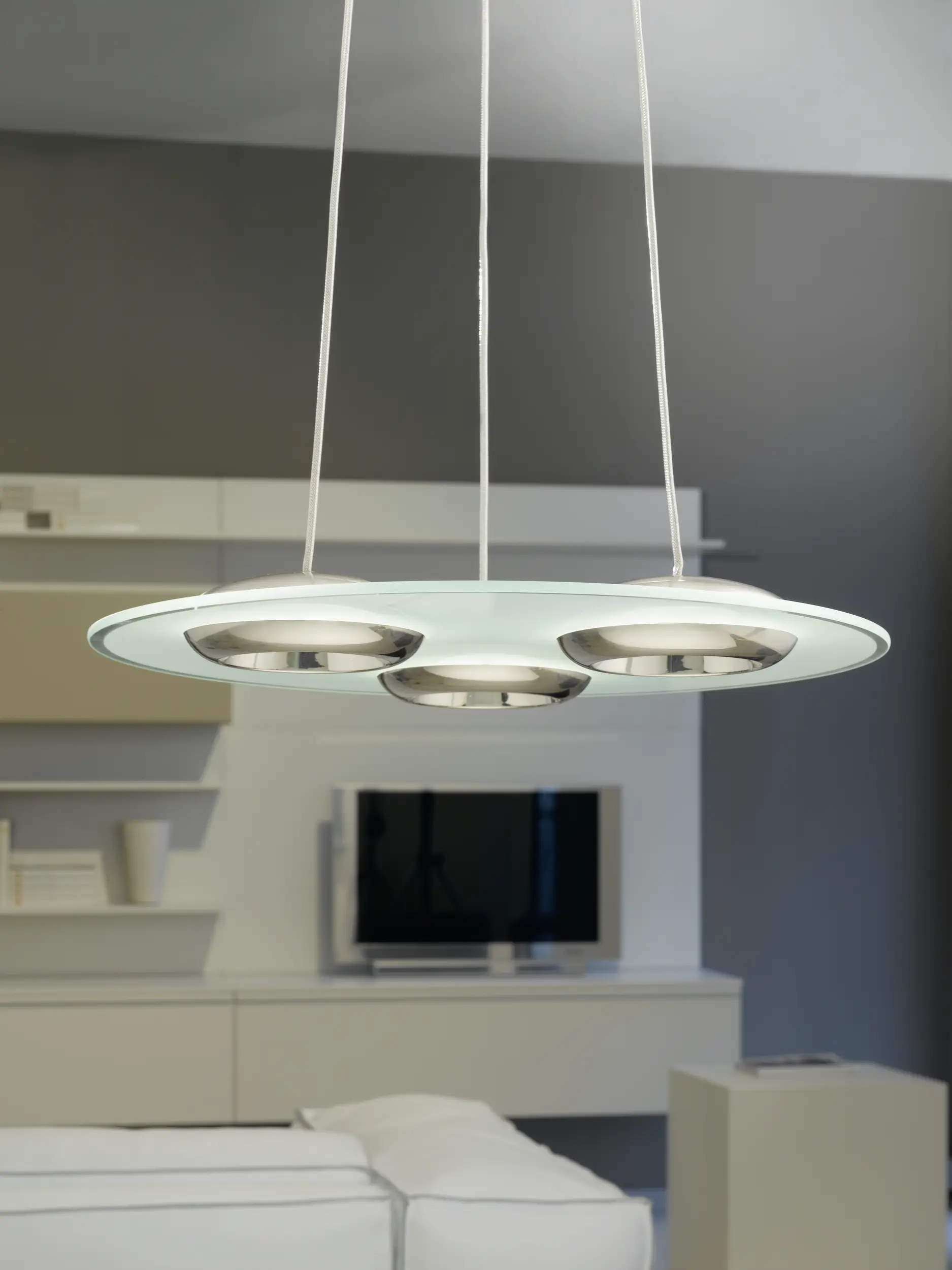 BOOTES 12 is designed for indoor spaces with a satin nickel steel body and satin glass shade that diffuse warm white LED light elegantly. The fixture features three dimmable 7.1W LED lamps, allowing customizable ambiance. Its robust build and timeless design make it a reliable choice for sophisticated interiors.