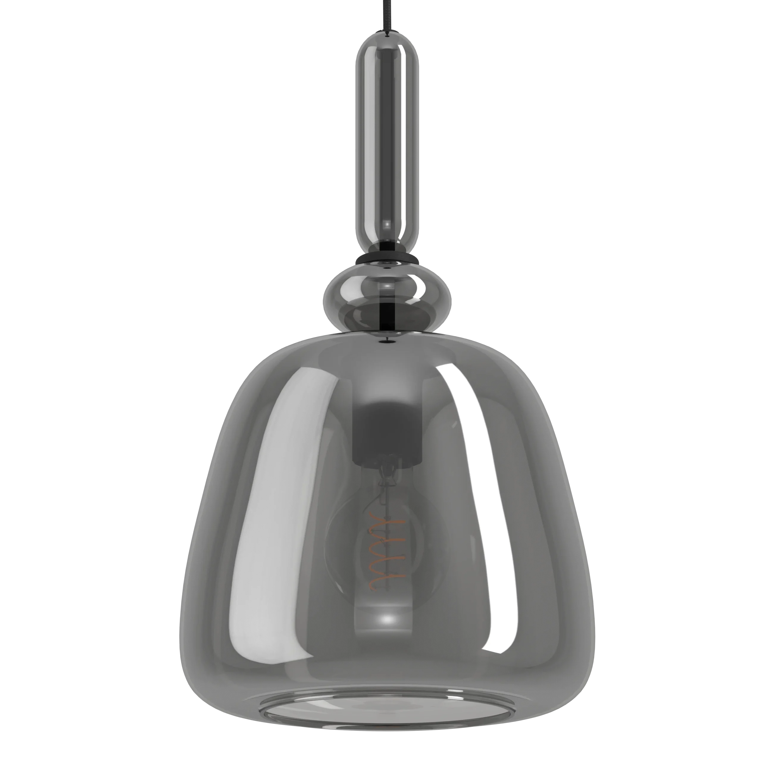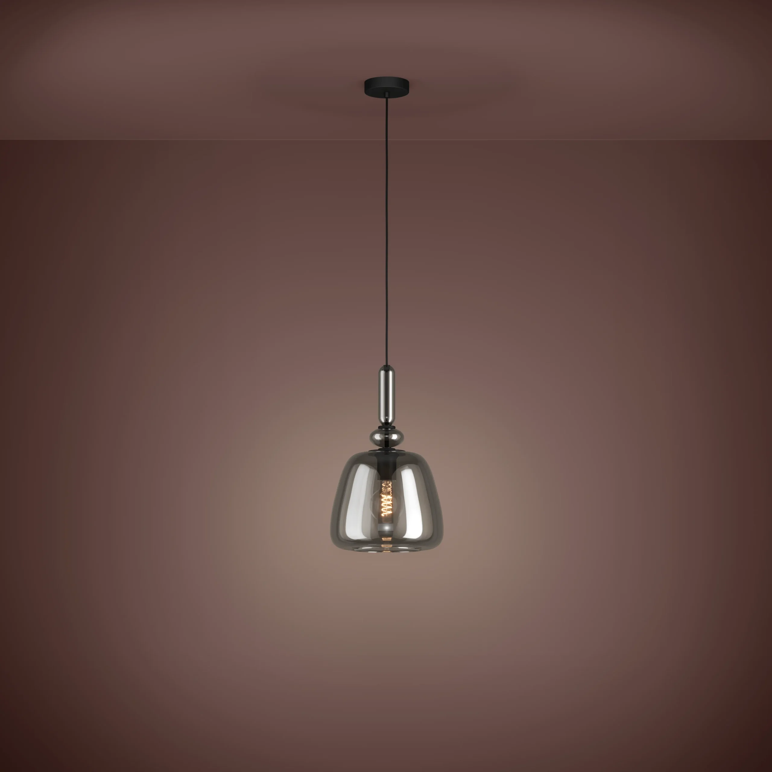 Elegant Smoke-Glass Dome: Features a black-transparent vaporized glass shade paired with a black steel canopy for a sleek, industrial-chic look—perfect for modern kitchens, lounge zones, or bedside settings.