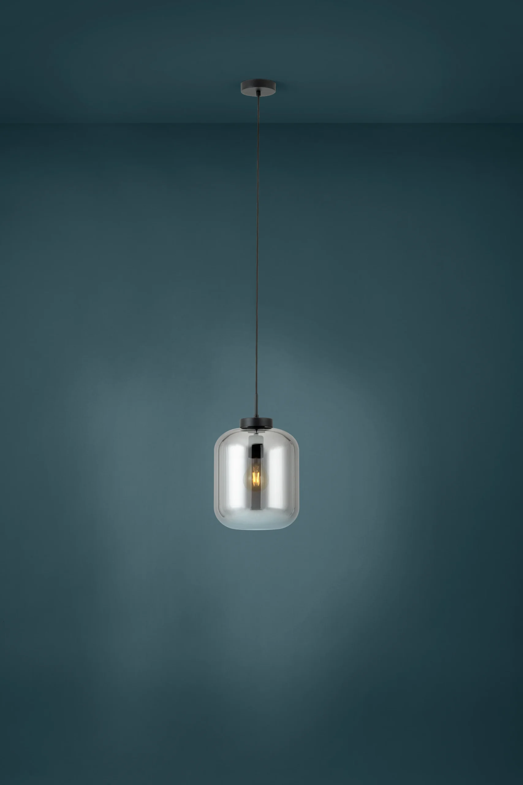 BULCIAGO39673 Pendant Light – 1×E27 Socket (Max40W), Black Steel with Black‑Transparent Vaporized Glass Shade, Ø250mm × H1500mm – IP20 Indoor – 2‑Year Warranty