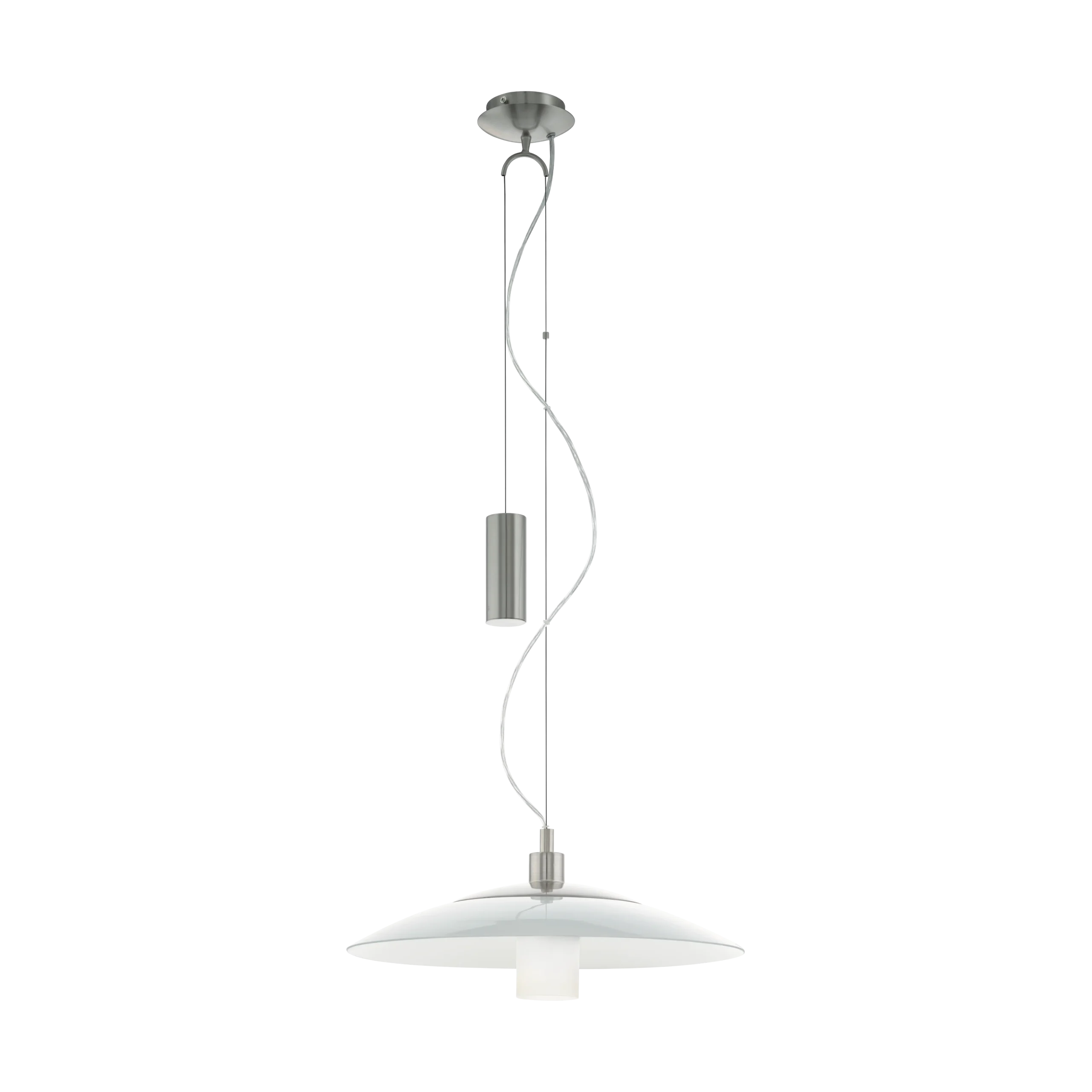 Cabral 95462 Satin-Nickel & White Glass Pendant Light – 19″ Ø, Height-Adjustable 37″–57″, E27 Socket, Modern Steel & Glass Design