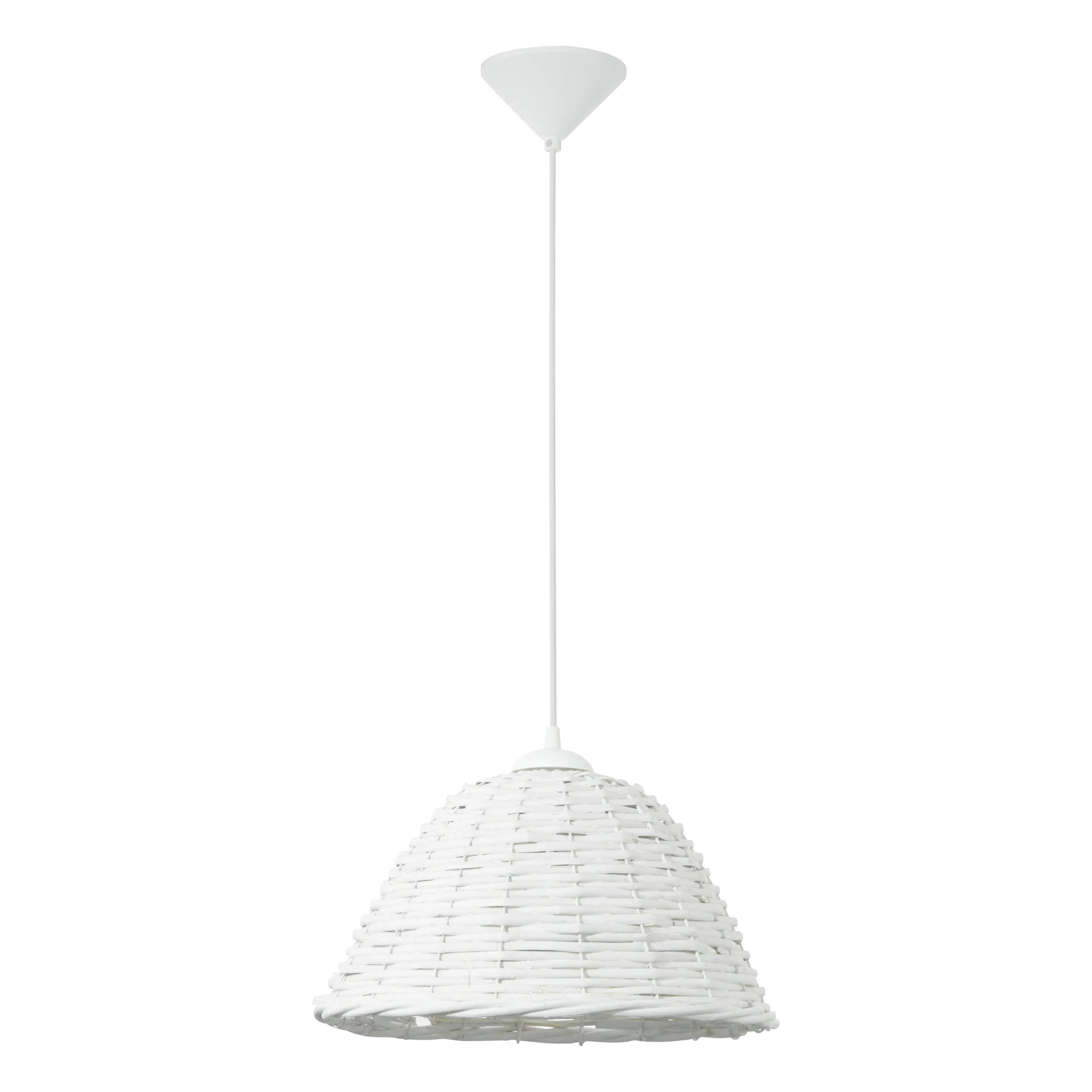 The CAMPILO 1 12 pendant light stands out with its white plastic enclosure and natural bast material shade, creating a calming effect ideal for indoor spaces. It supports an E27 socket compatible with a 60W lamp and delivers a warm, inviting glow. This light fixture melds natural textures with practical design, suitable for enhancing casual and cozy room settings.