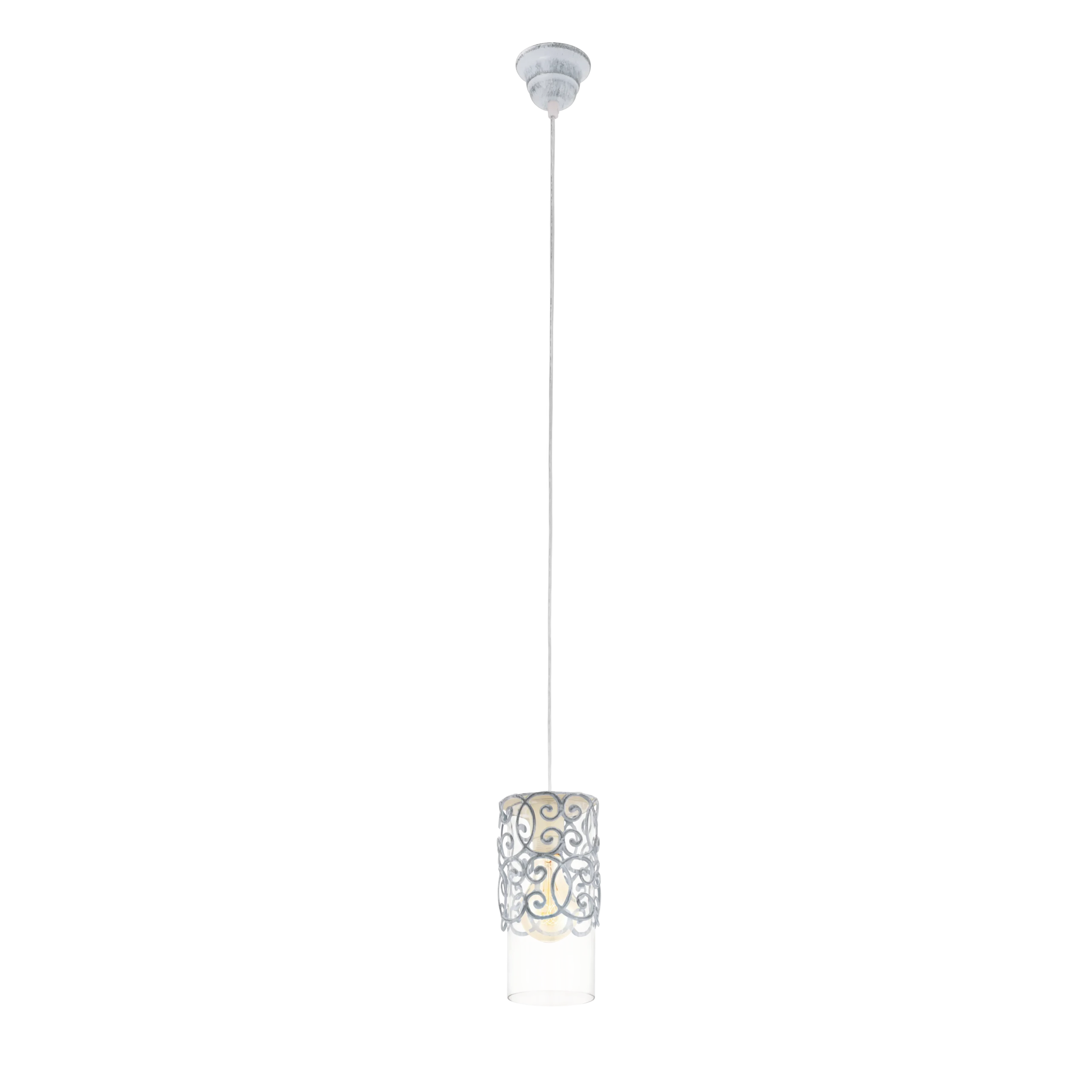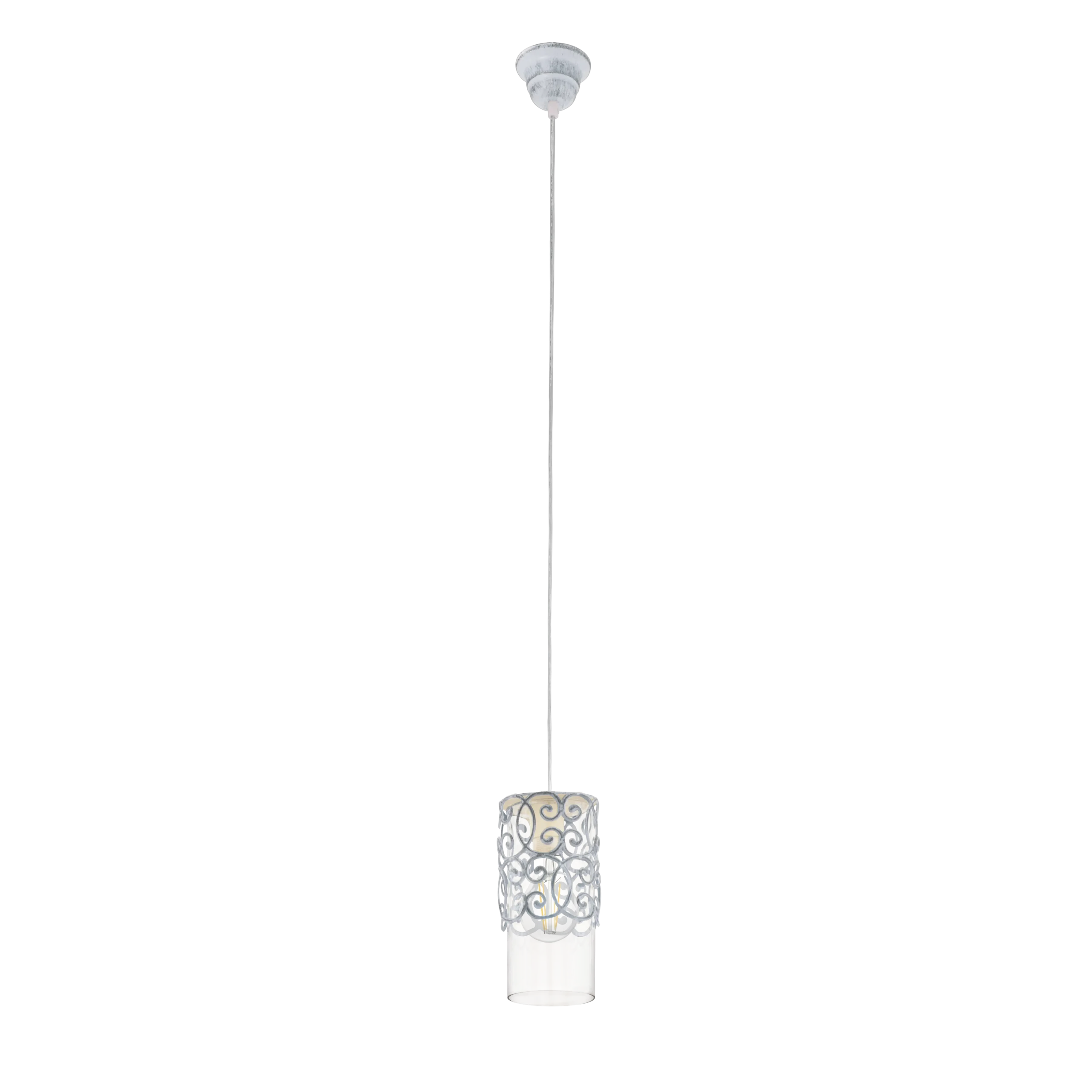 Elegant Vintage‑Modern Design: This pendant combines a decorative grey‑blue steel cage with a clear glass inner shade—creating a layered, Art‑Nouveau inspired aesthetic that adds charm to entryways, hallways, or bedside zones .