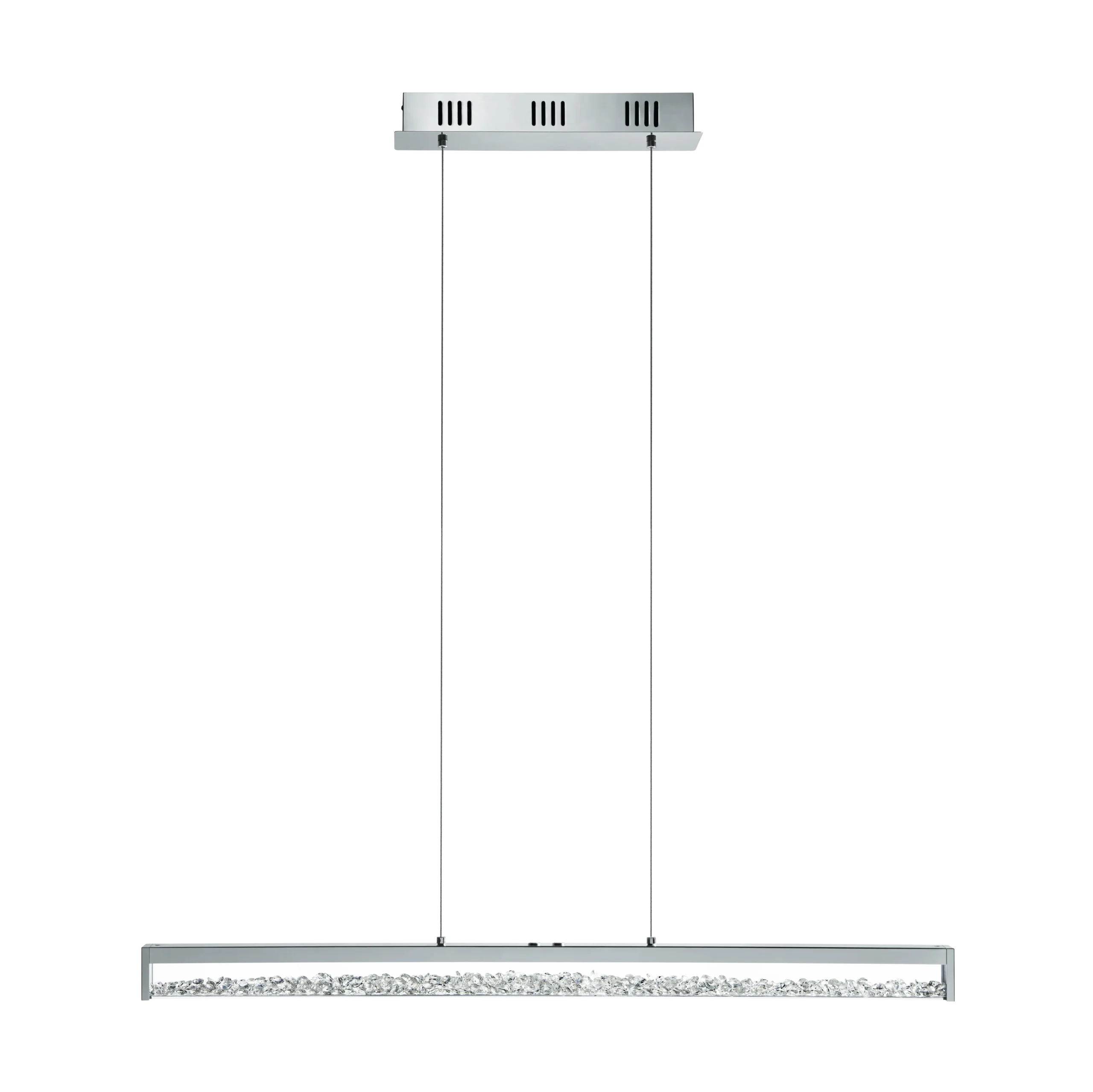 Brilliant Crystal-Infused Design: Long glass enclosure filled with sparkling crystals beneath chrome-plated steel and aluminium—creates luxurious ambiance and glittering reflections when lit.