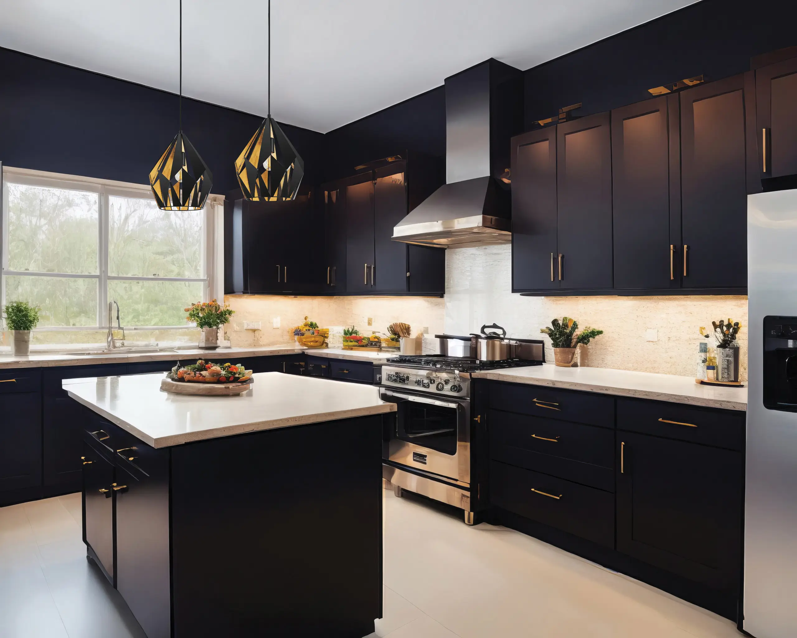Geometric Statement Design: Features a diamond-shaped black steel shade with a golden interior that casts captivating light-and-shadow patterns—ideal for modern, vintage, or industrial decor in living rooms, kitchens, or entryways.