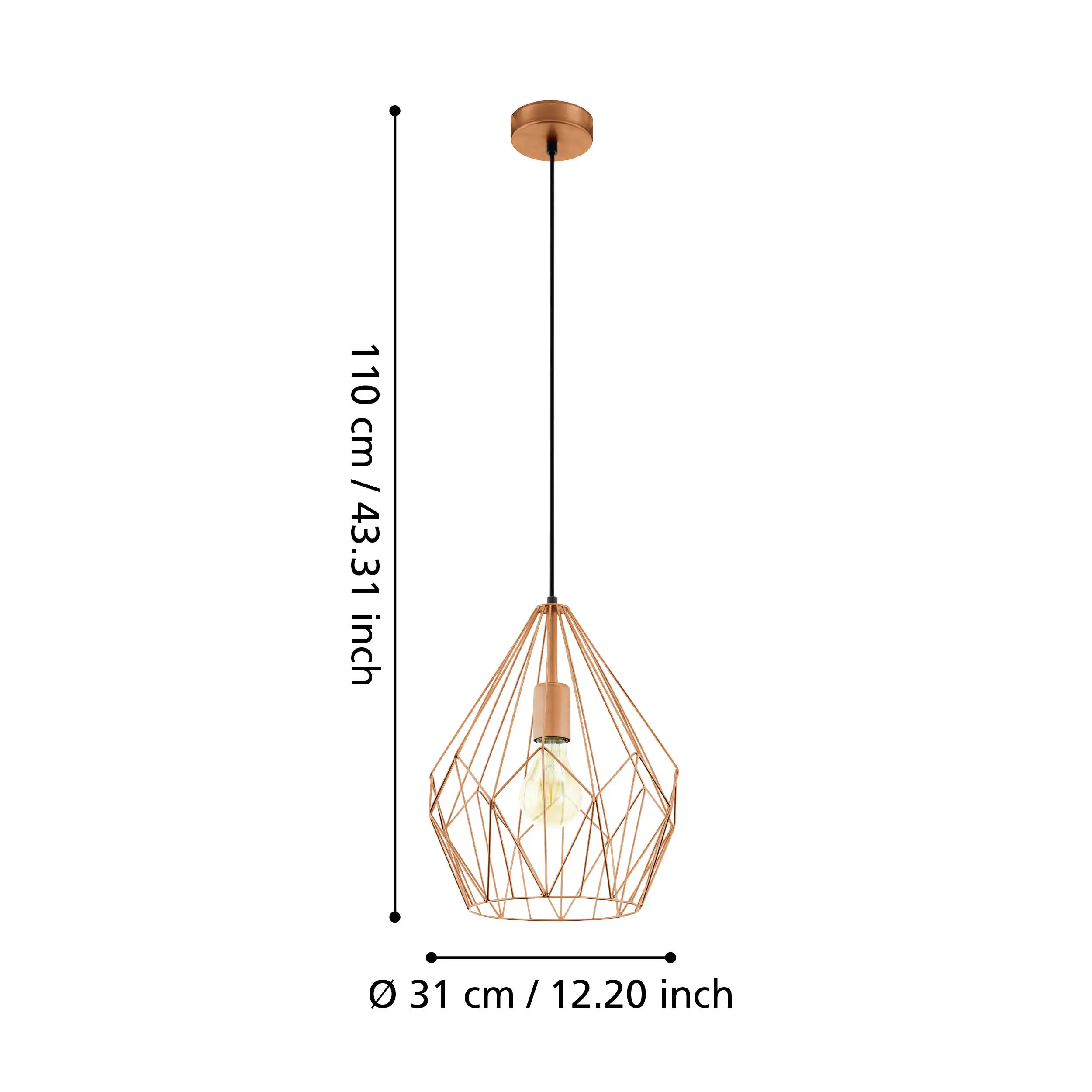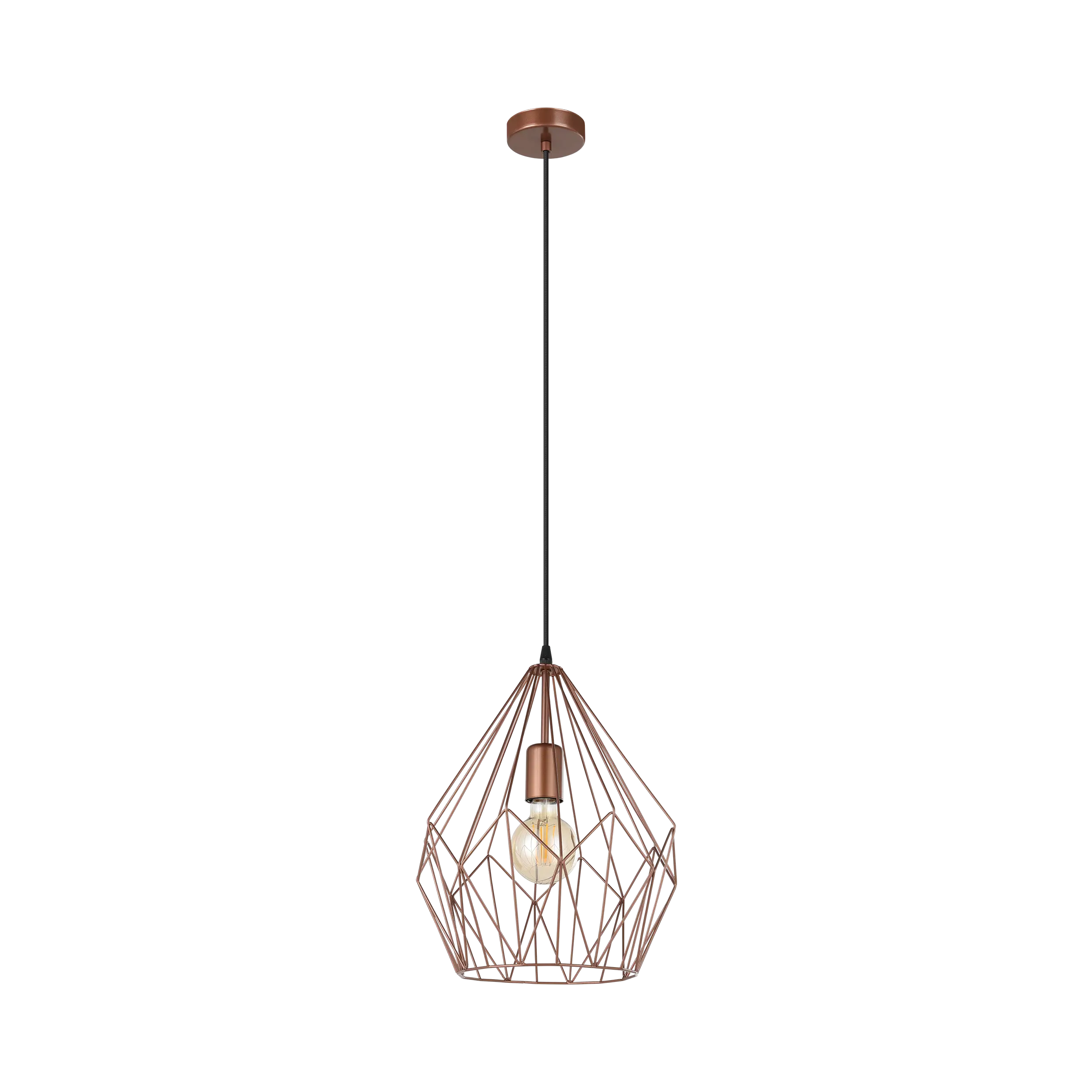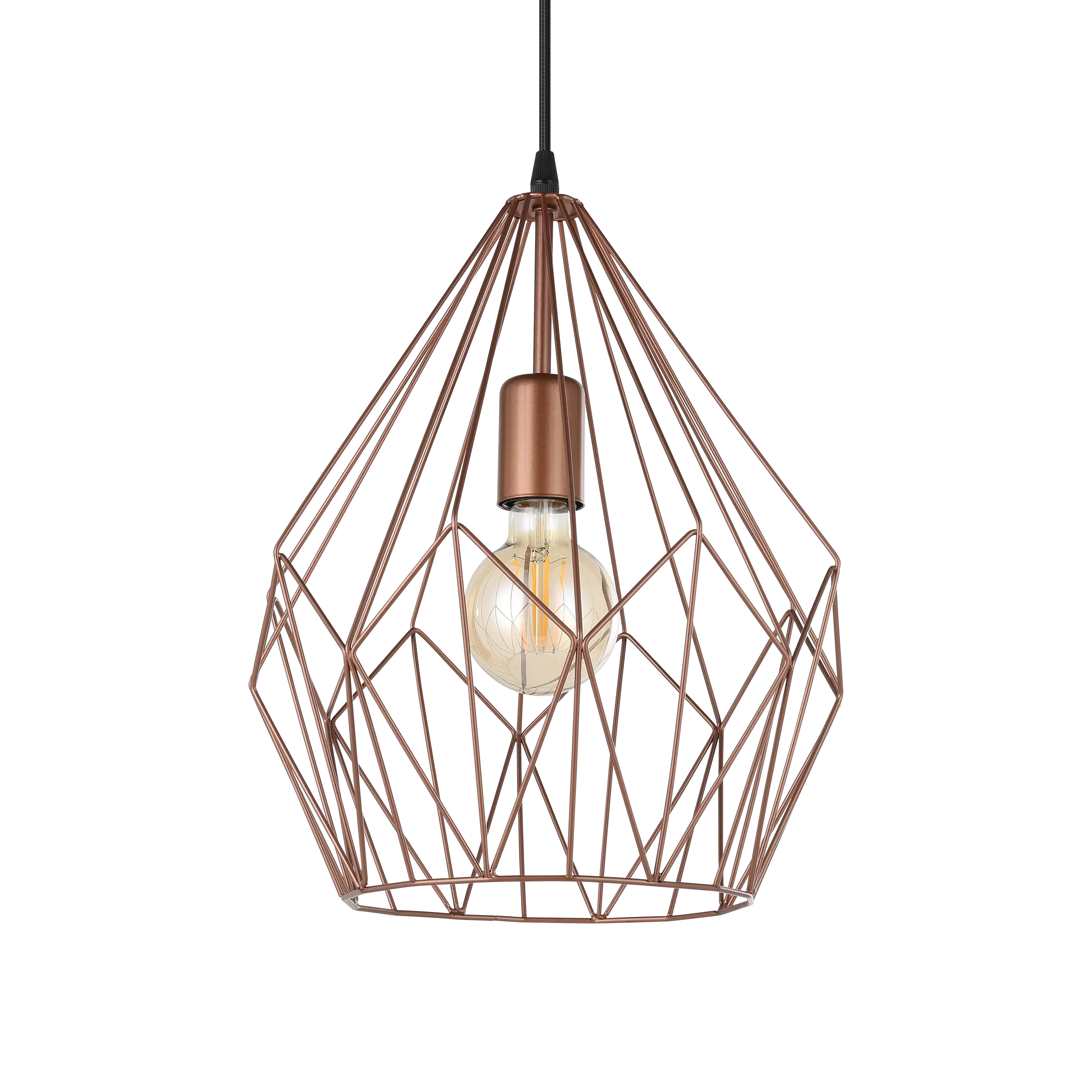 Stylish Cage Design: The CARLTON pendant features a copper‑coloured steel diamond‑shaped wire‑cage shade that casts striking light-and-shadow effects, making it a captivating focal point in vintage‑industrial, minimalist, or modern interiors .