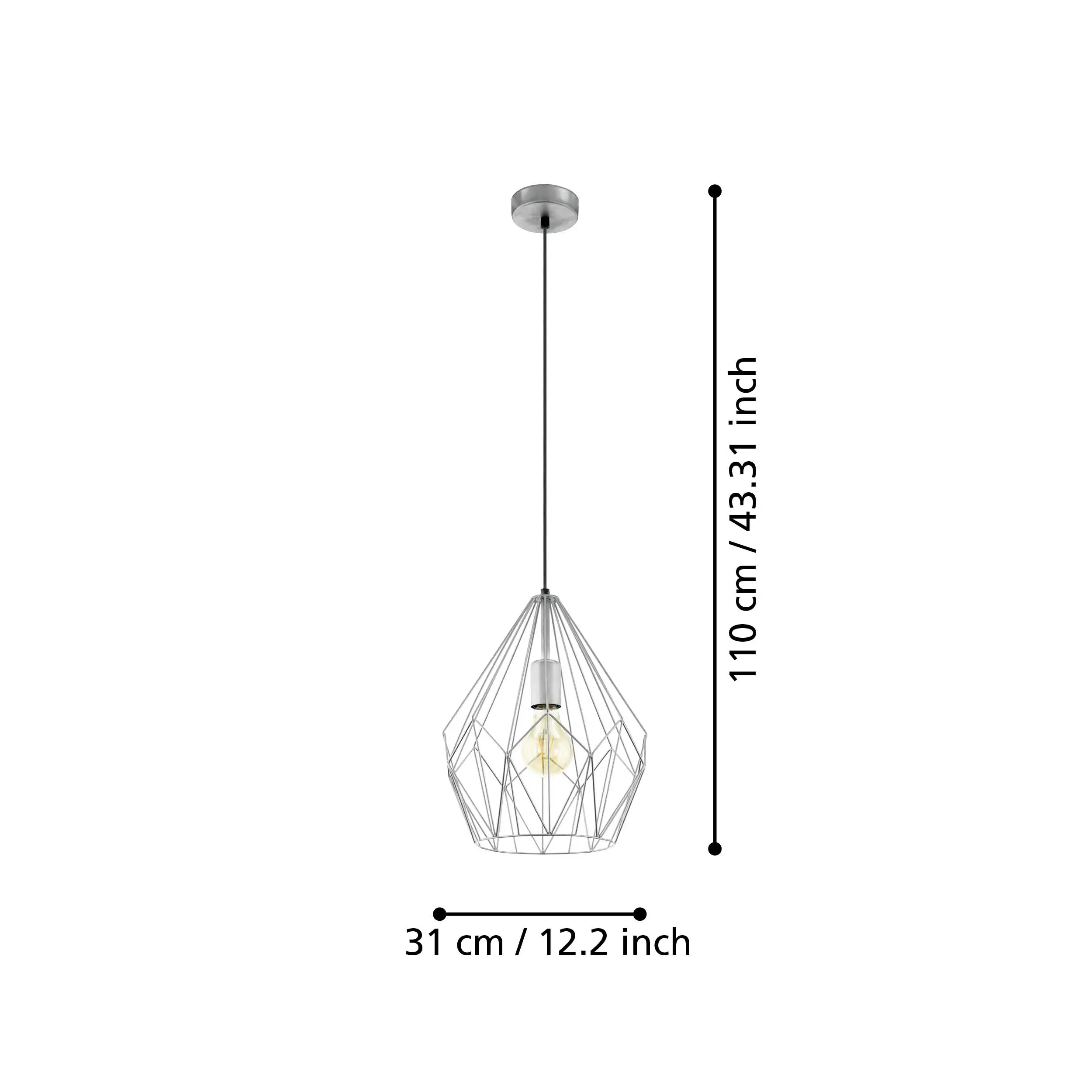 Adjustable Hanging Height: Comes with a 1,100mm (43″) suspension cable, shade diameter 310mm (12.2″), height extends up to 1,100mm; net weight approx. 1.28kg.