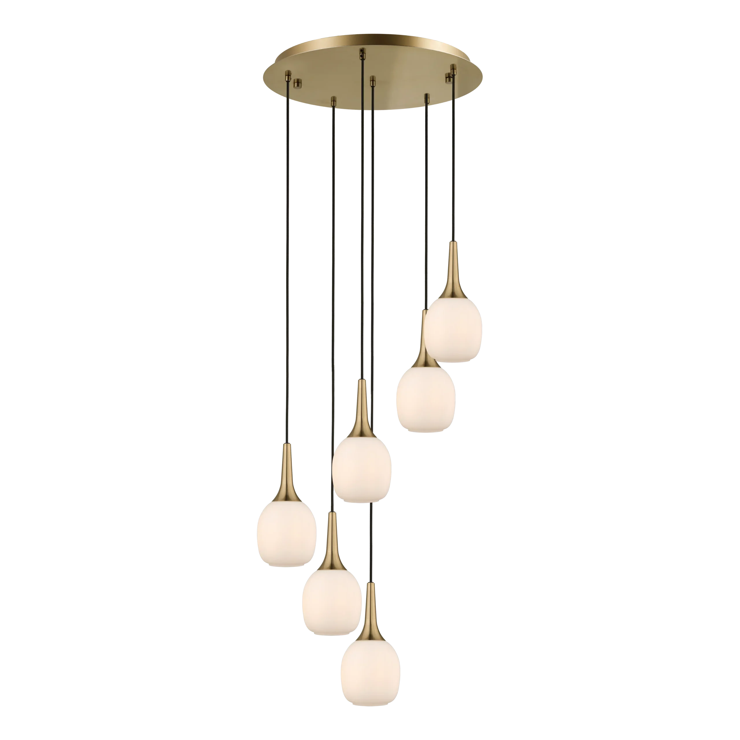 CAUBBIOPendant Lamp – PBEPL Steel Frame with Opal White Glass Shades, 6 x E27 Bulbs Compatible, Max 40W, 1700mm Height, 500mm Diameter