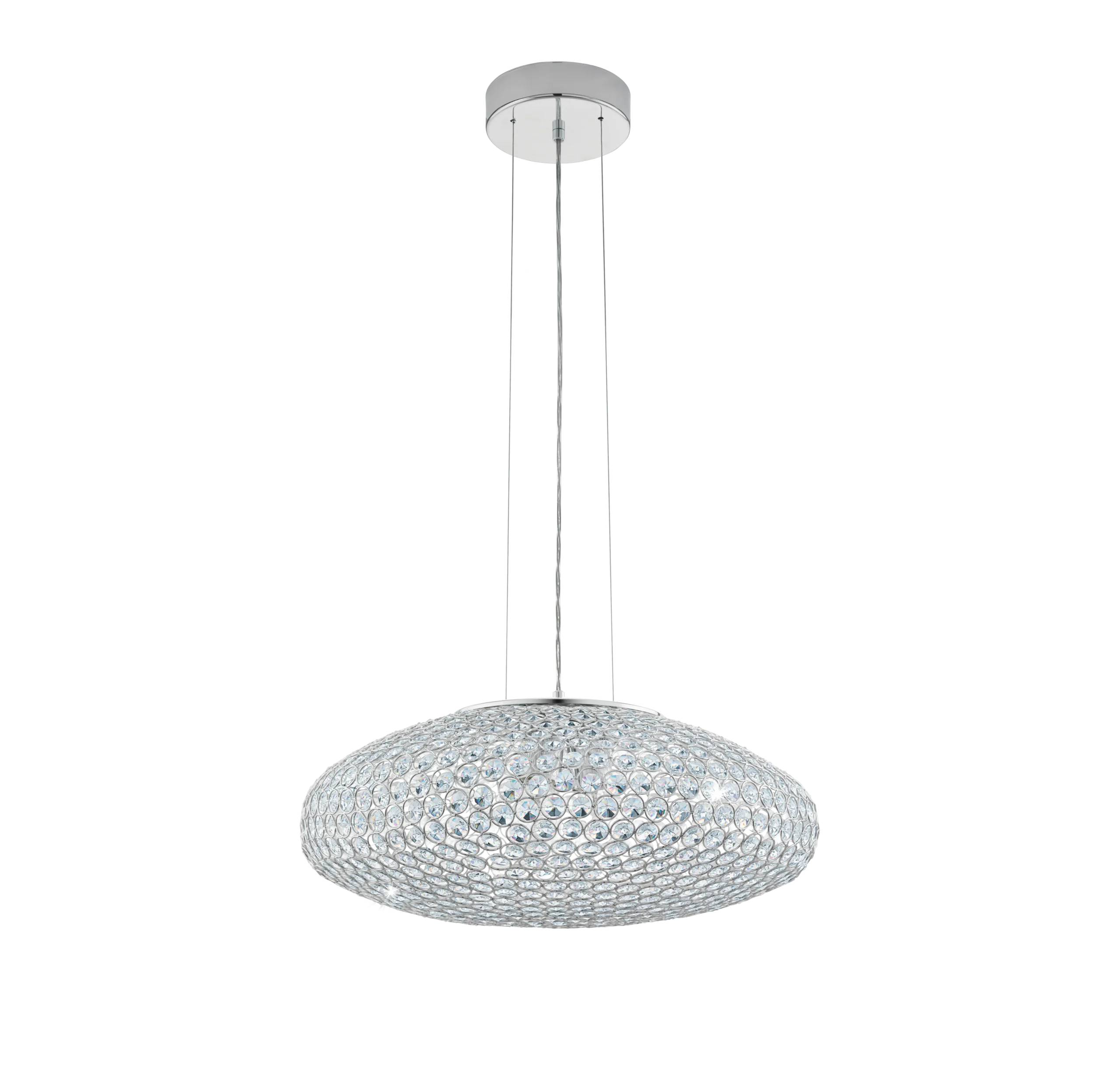 CLEMENTE 3-Light Crystal Pendant – Chrome-Finish Steel & Brilliant Glass, 3×E27 (60 W max), Ø 540 mm × 1100 mm Height, IP20 – Class I – 2-Year Warranty