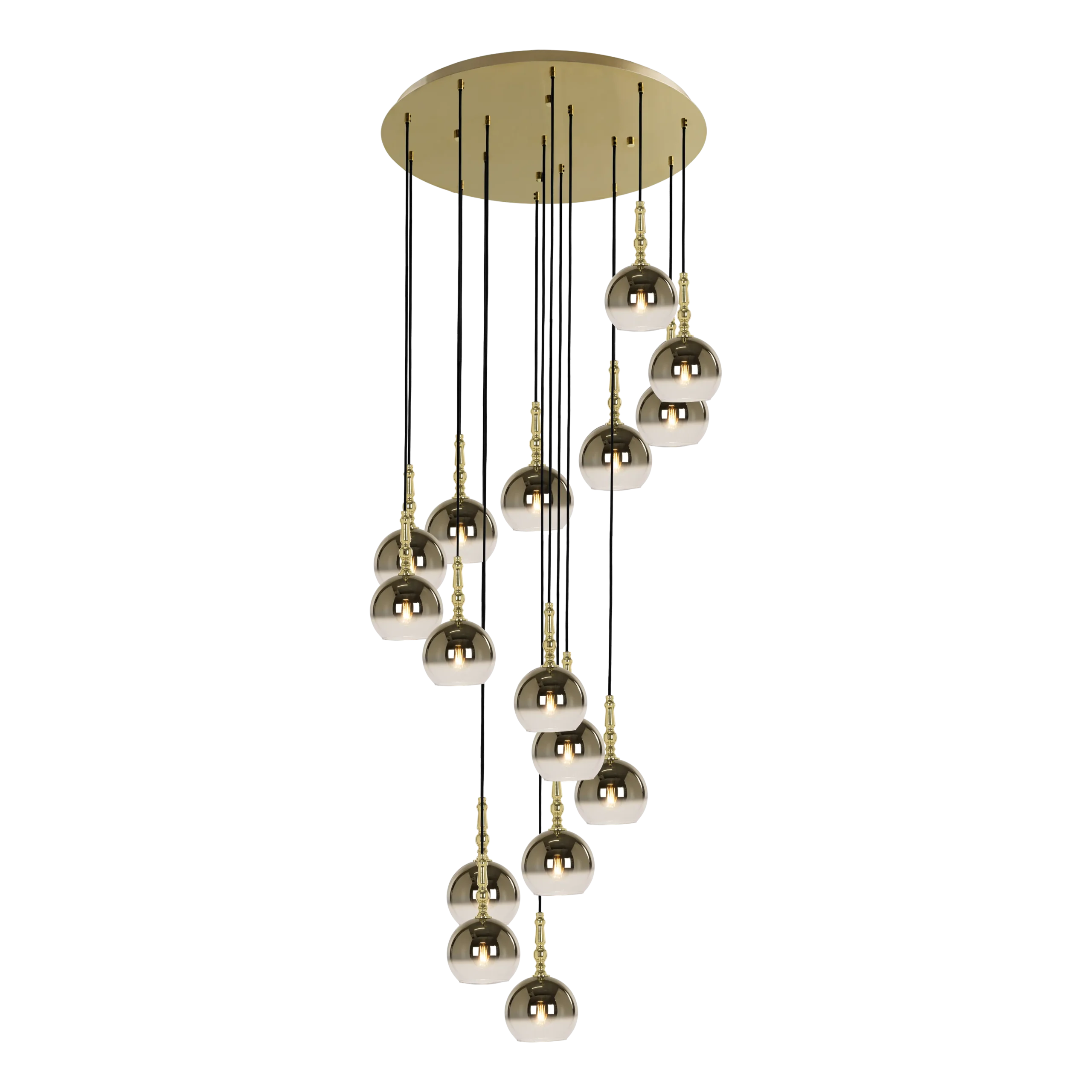 COLFIORITO Pendant Lamp – 300 cm Height x 78 cm Diameter – 16 x E27 Sockets – 40W Max per Bulb – Brass Shiny Steel – Golden Gradient Glass – Elegant Indoor Lamping