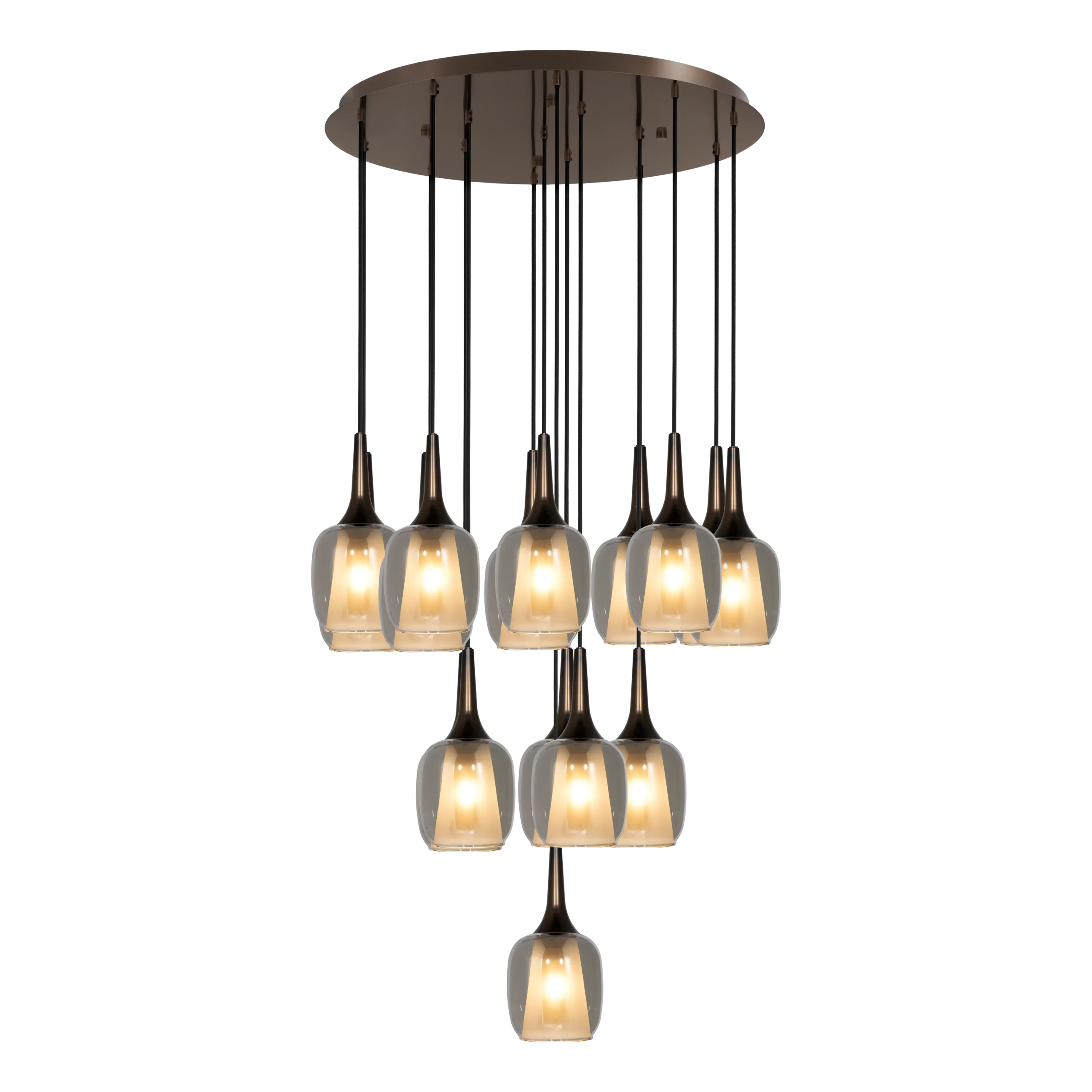 CORNACCHIOLA Pendant Lamp – 170 cm Height x 78 cm Diameter – 16 x E27 Sockets – 40W Max per Bulb – Dark Bronze Steel – SLamply Black Vaporized Glass – Decorative Indoor Lamping