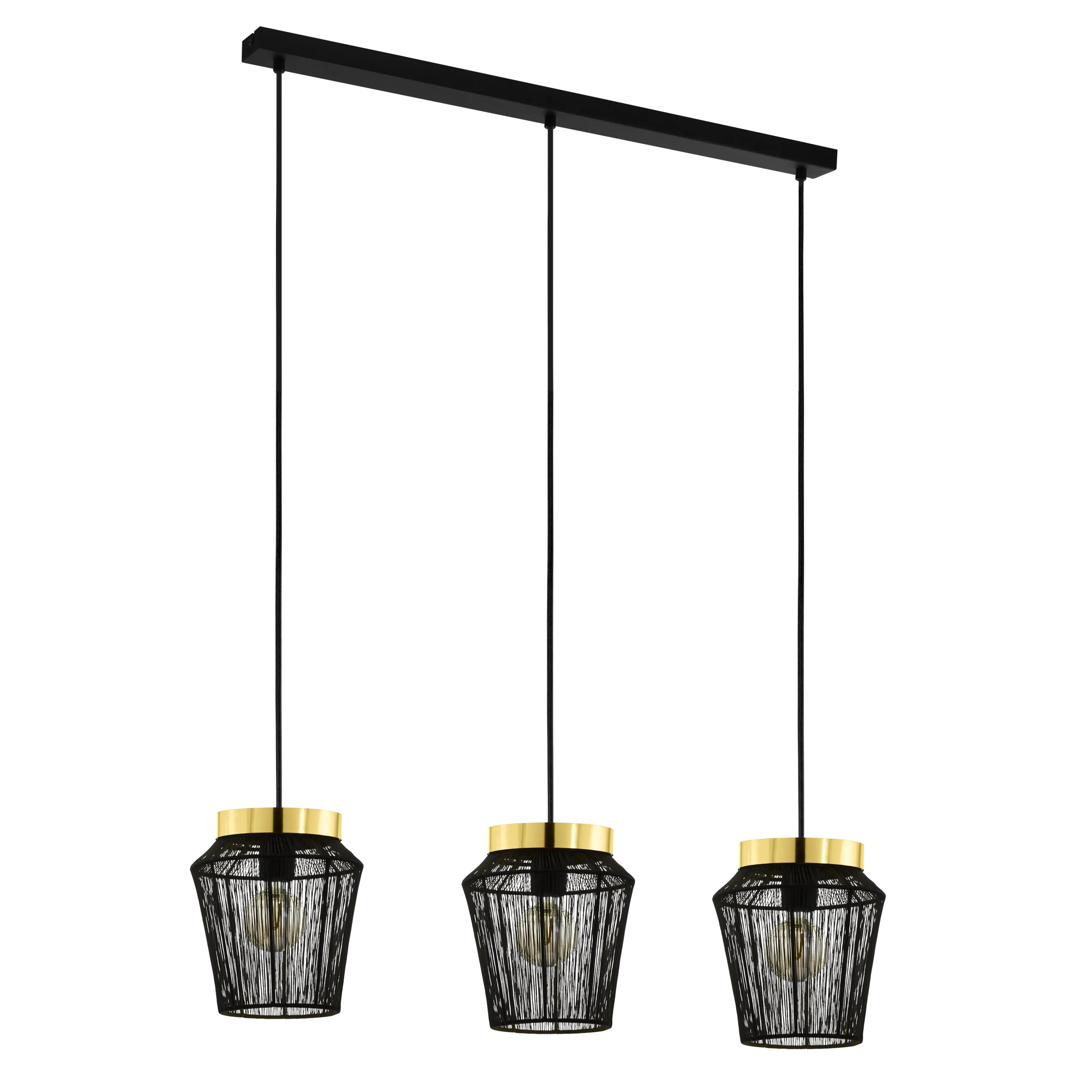 Handcrafted vintage wire‑cage design – Three black steel shades wrapped in fine wire threads with elegant brushed‑brass rims, casting striking light and shadow patterns that enhance rustic, loft, or retro interiors.