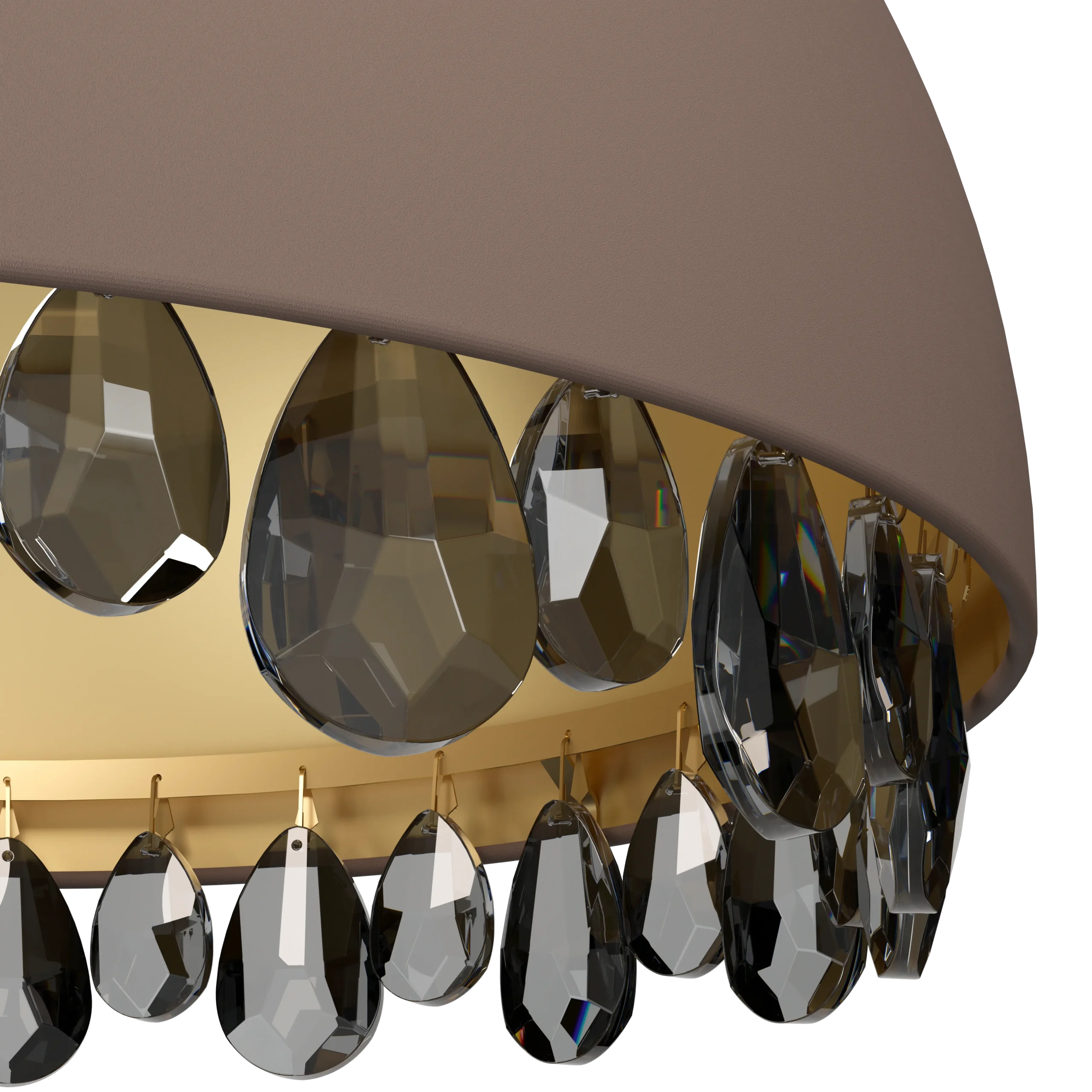 Stylish mocha-toned authenticity – steel frame with mocha-coloured finish, complemented by matching glass shades and gold-black trim for a chic, contemporary look.