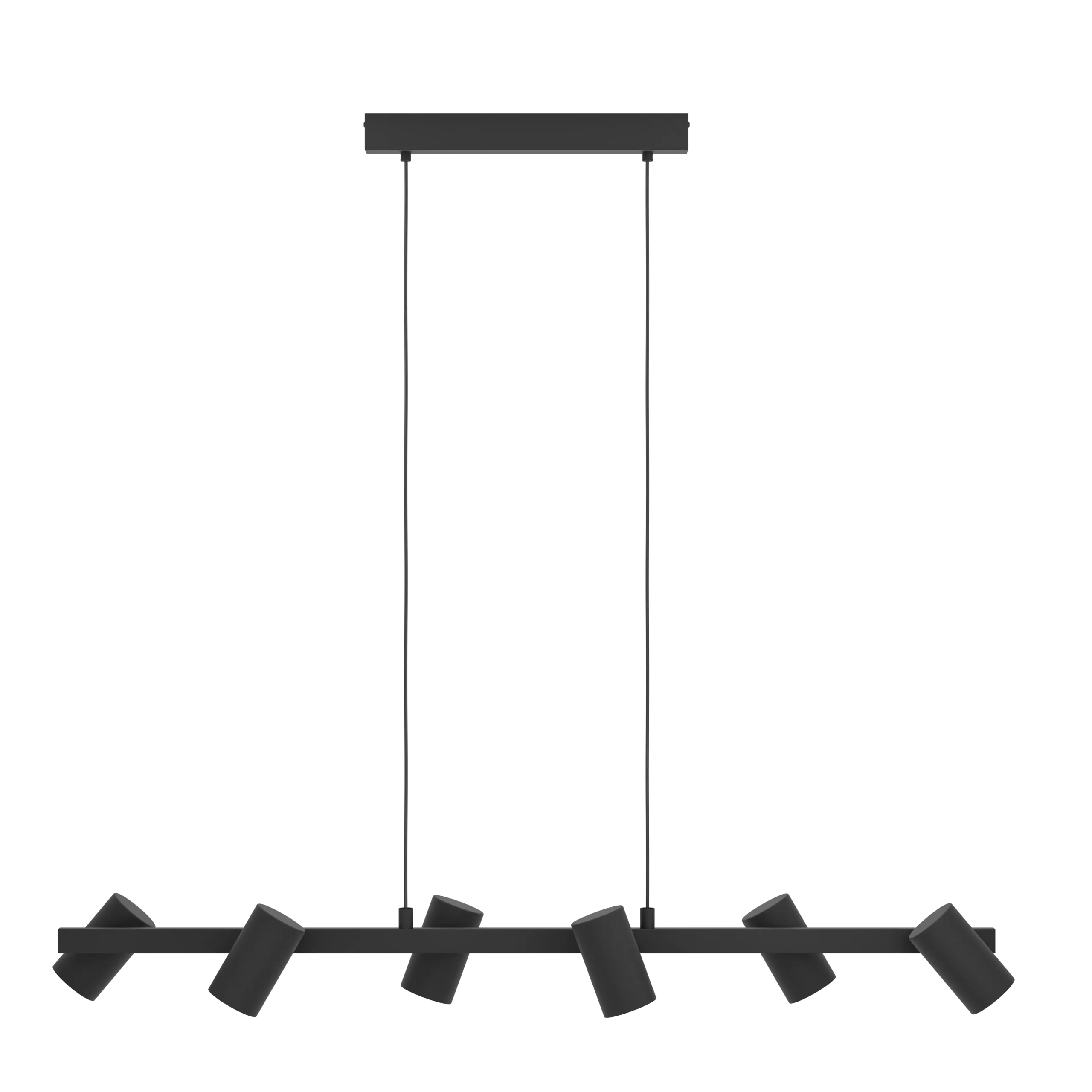 GATUELA 1 – 6‑Lamp Linear Pendant – Matte Black Steel, 1.16m × 19cm Canopy, Adjustable Drop up to 2m, 6 × E14 Sockets – 2‑Year Warranty