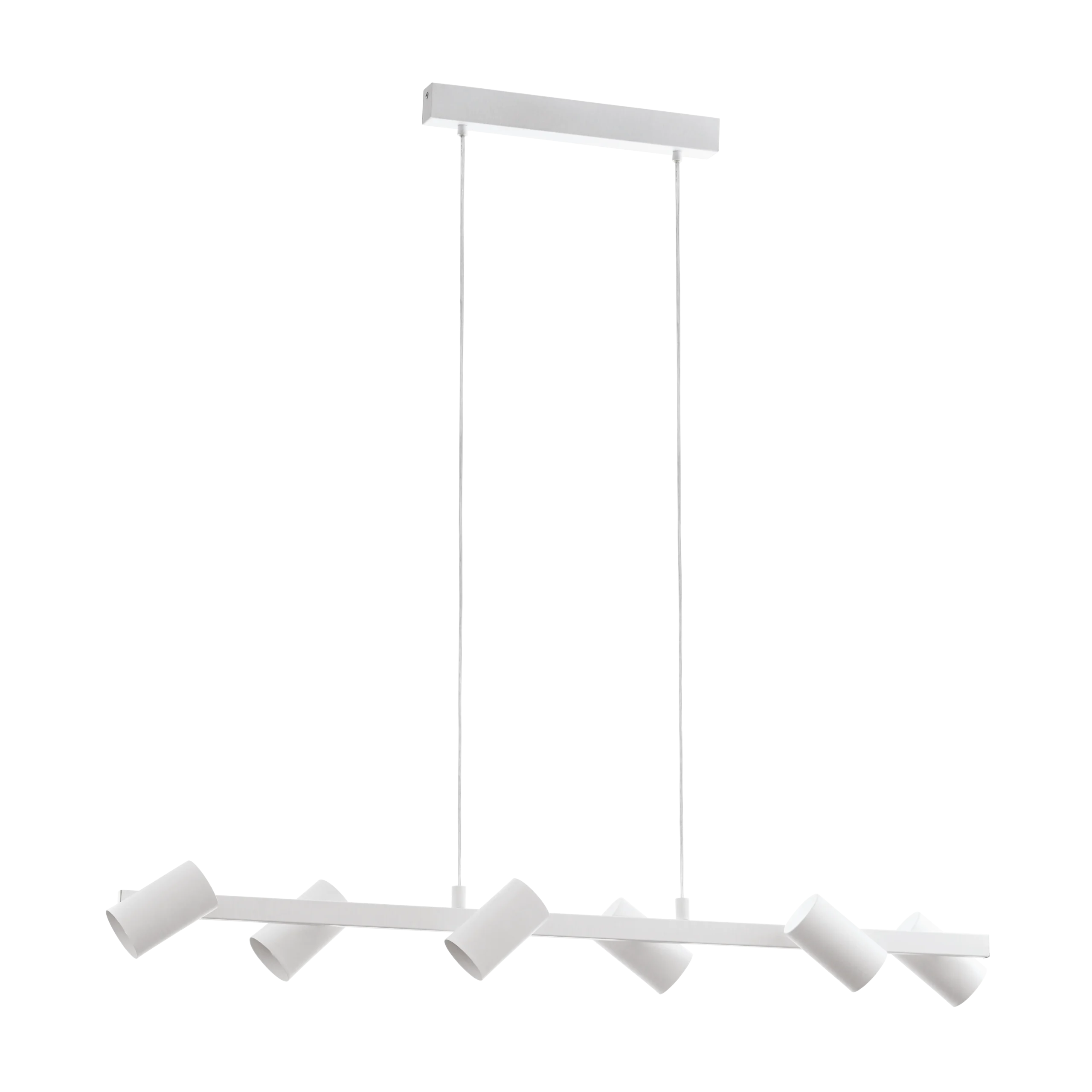 GATUELA 6‑Light Adjustable Pendant – White Steel & Satin Nickel Bar, 1,160mm × 190mm Canopy, 6×E14 Socket, 2,000mm Adjustable Drop – 2‑Year Warranty