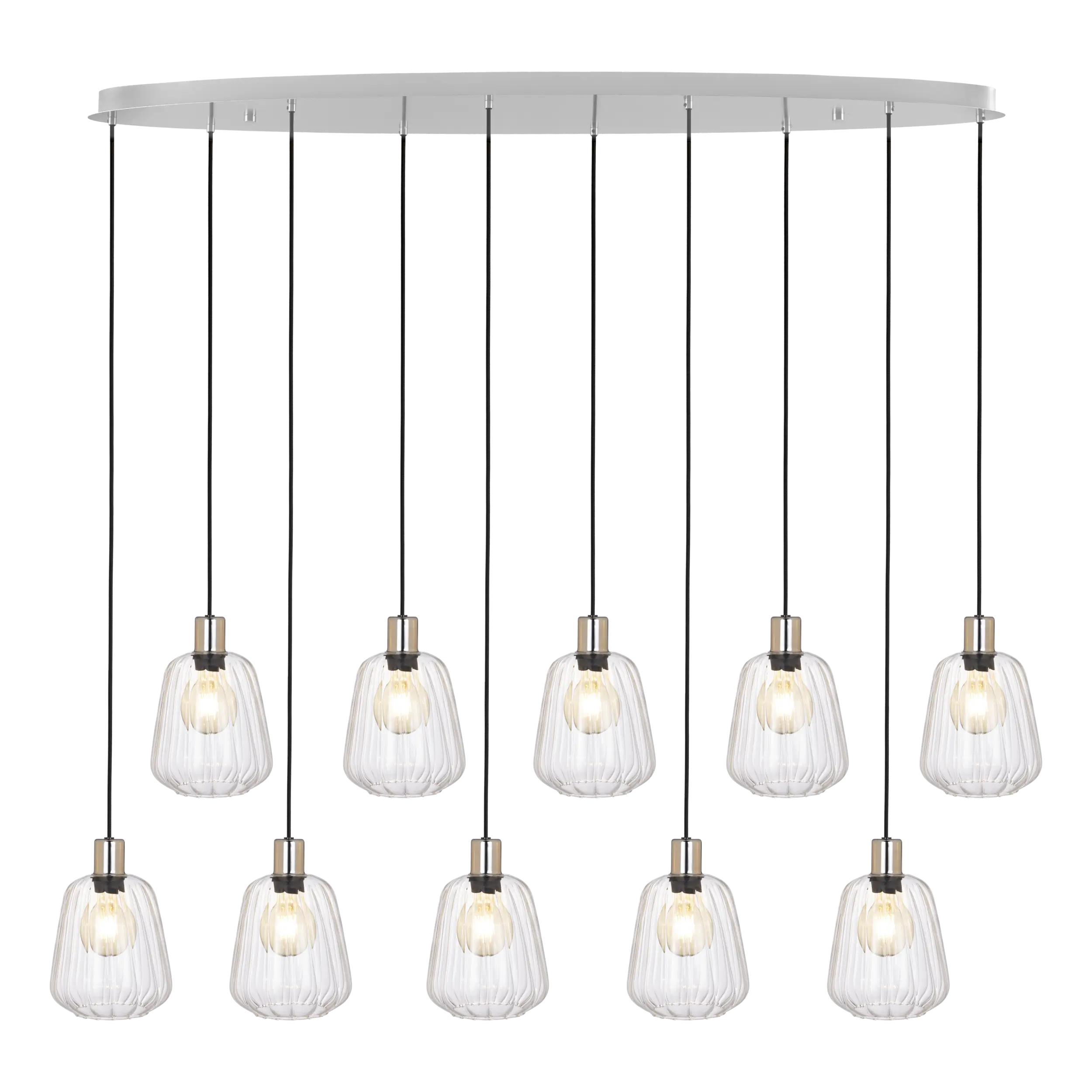 A bold and contemporary pendant light crafted in chrome-finished steel, the EGLO GIOIELLA delivers sleek elegance and striking visual impact to spacious interiors.