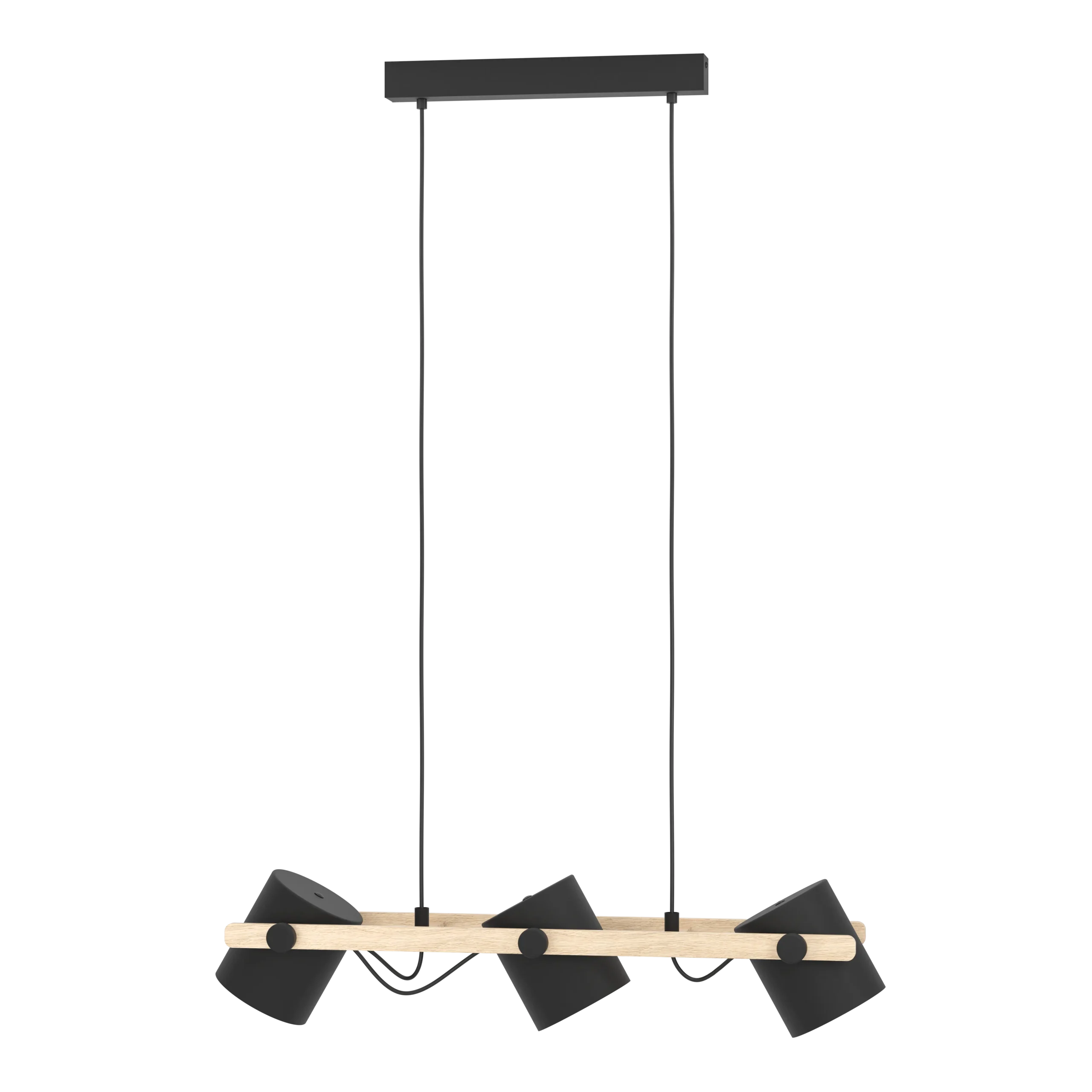 Vintage‑Modern Linear Design: Features three matte-black cylindrical steel shades accented with natural wood interiors—blending sleek minimalism with cozy mid-century charm; perfect over dining tables, kitchen islands, or workspaces.