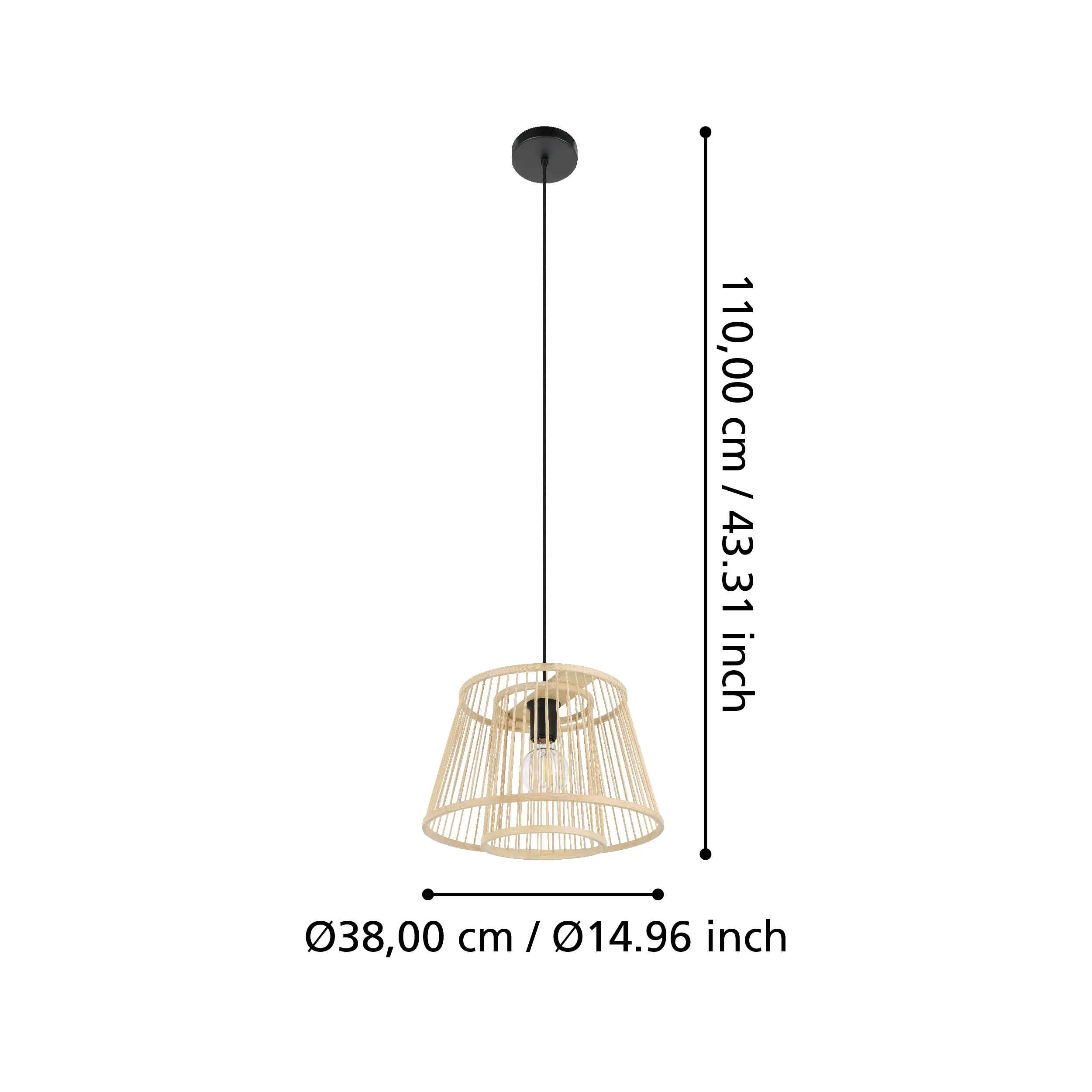 Adjustable Suspension: Comes with a 110cm textile cable that can be shortened during installation .
