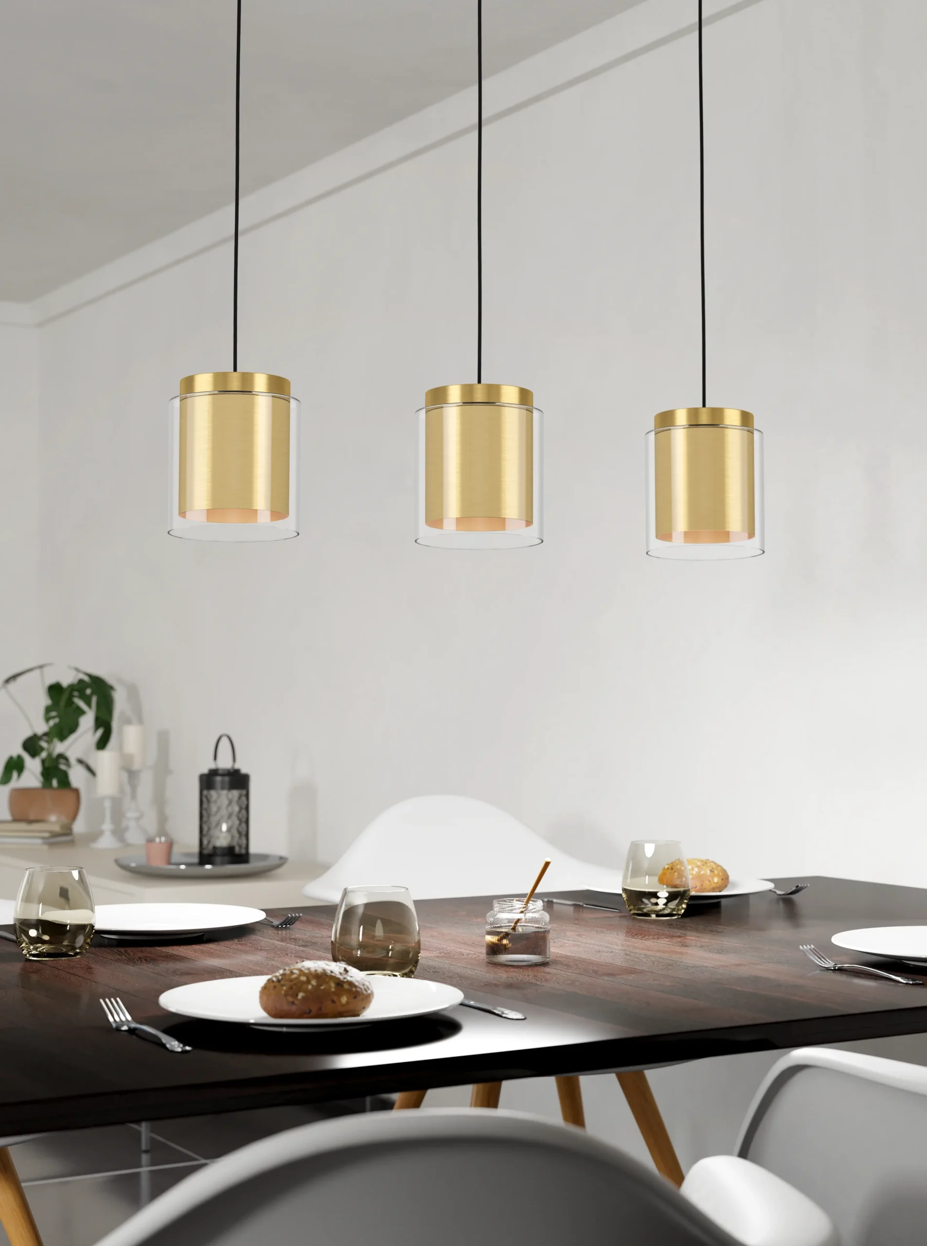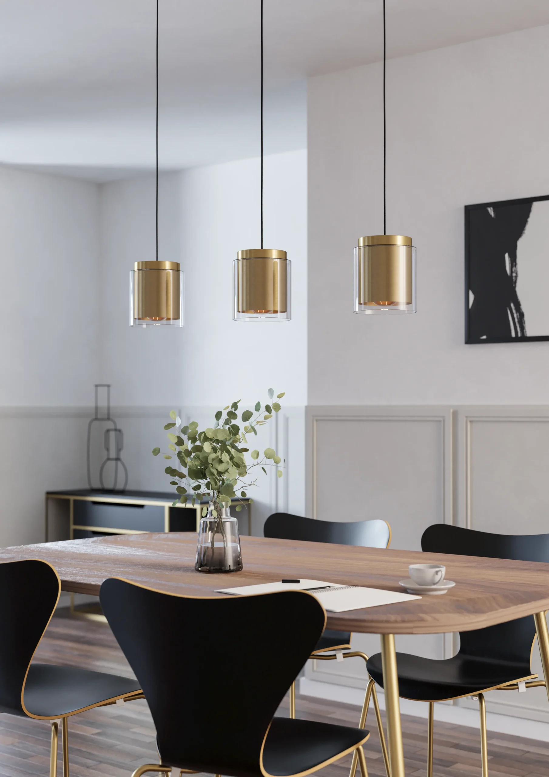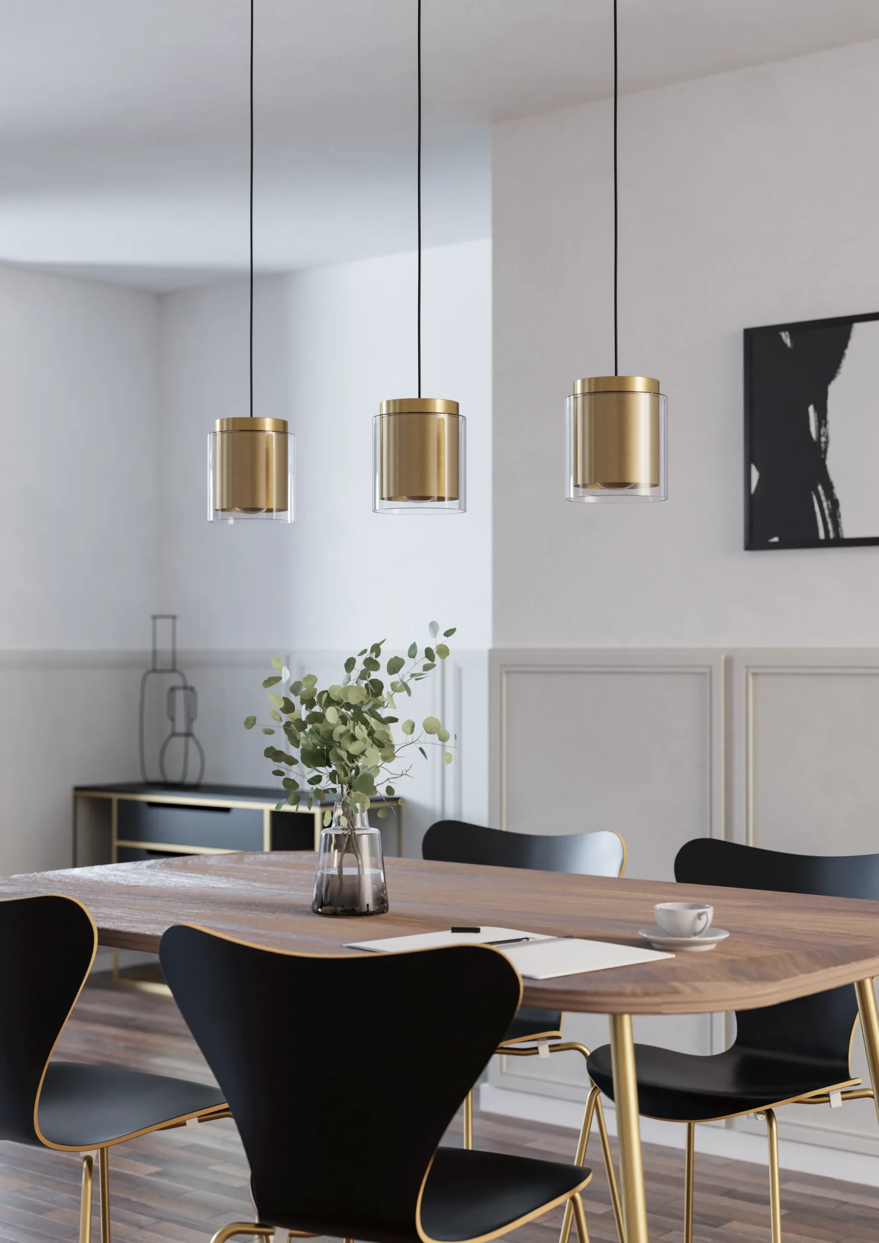 Wide-format clear-glass pendant – Elegant black/brass/gold color combo with transparent glass for ambient brightness.