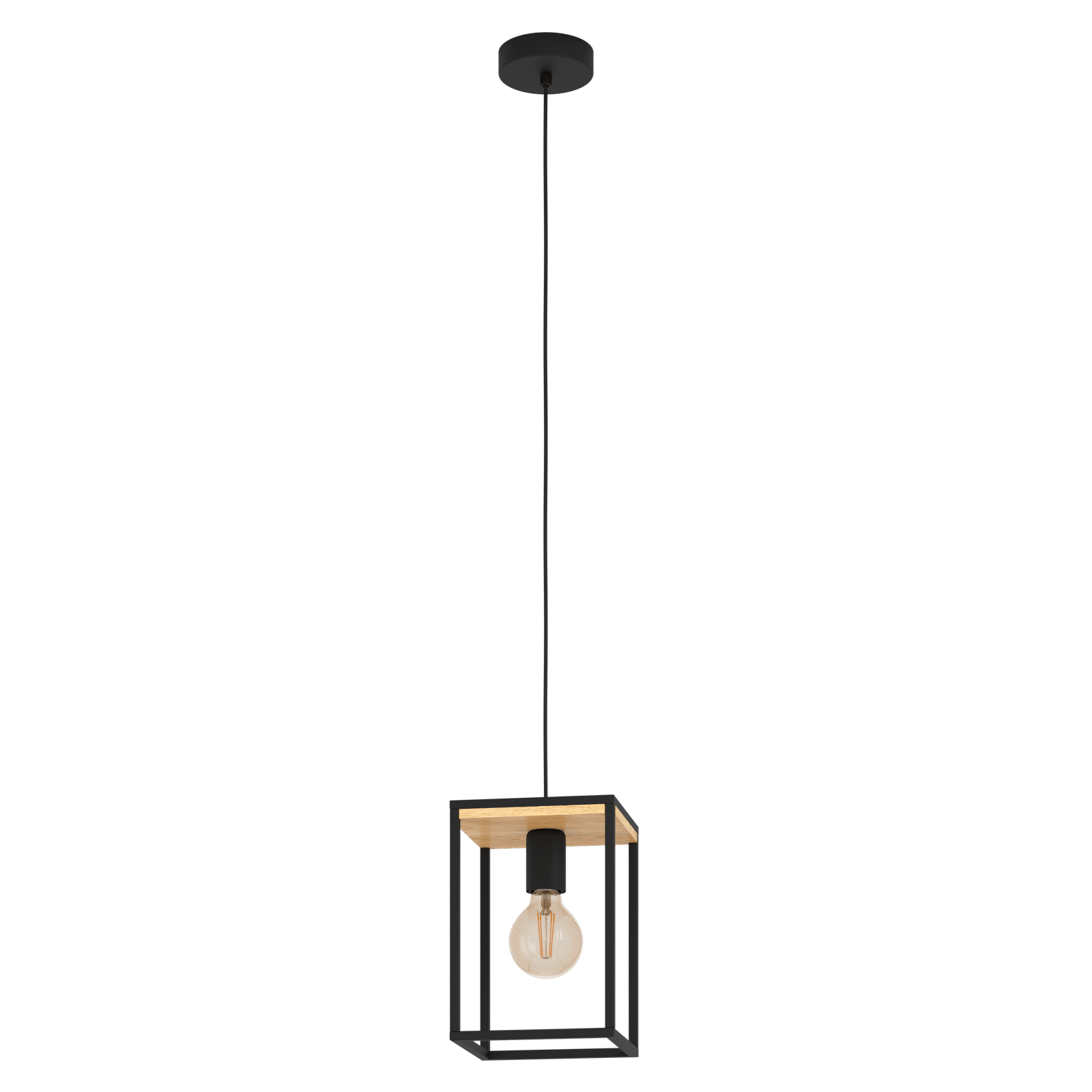 LIBERTAD 99795 Pendant Light, 1‑Light E27, Structured Black Steel Frame with Natural Wood Accent – Adjustable Cable (110cm) – Modern Geometric Ceiling Fixture