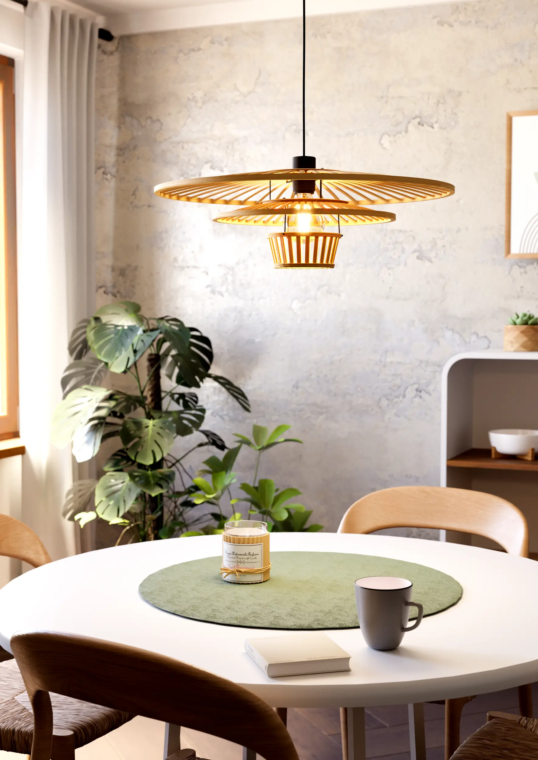 Generous Size & Adjustable Height: Measures 570mm (22.4″) in diameter, with an adjustable suspension length of 1,100mm (43.3″), making it suitable for both standard and high-ceiling spaces.