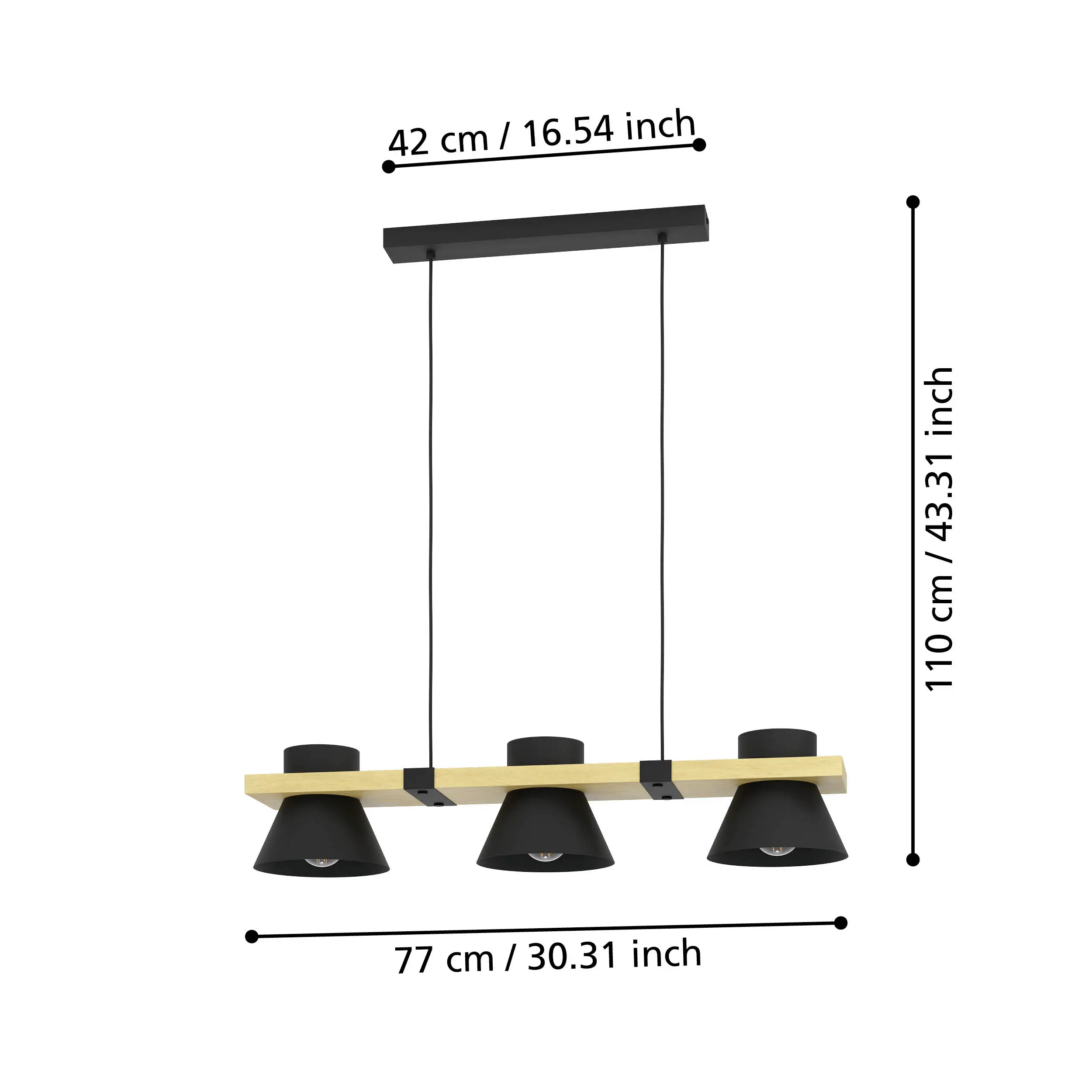 A contemporary pendant light combining black steel with warm wood accents, designed to add character and style to modern interiors.