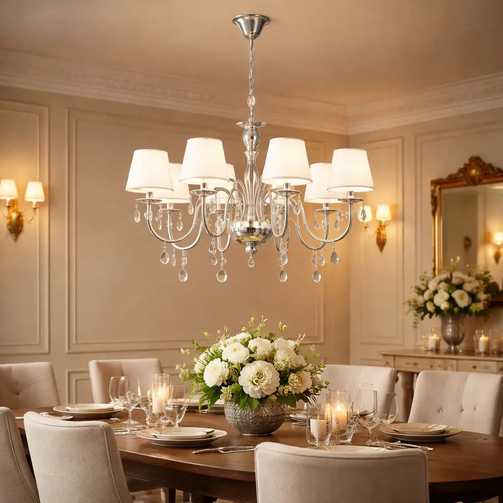 Ideal dimensions – Canopy diameter: 600mm (23.6″); maximum drop: 1,500mm (59″); net weight around 6kg—perfect for dining tables or kitchen islands.