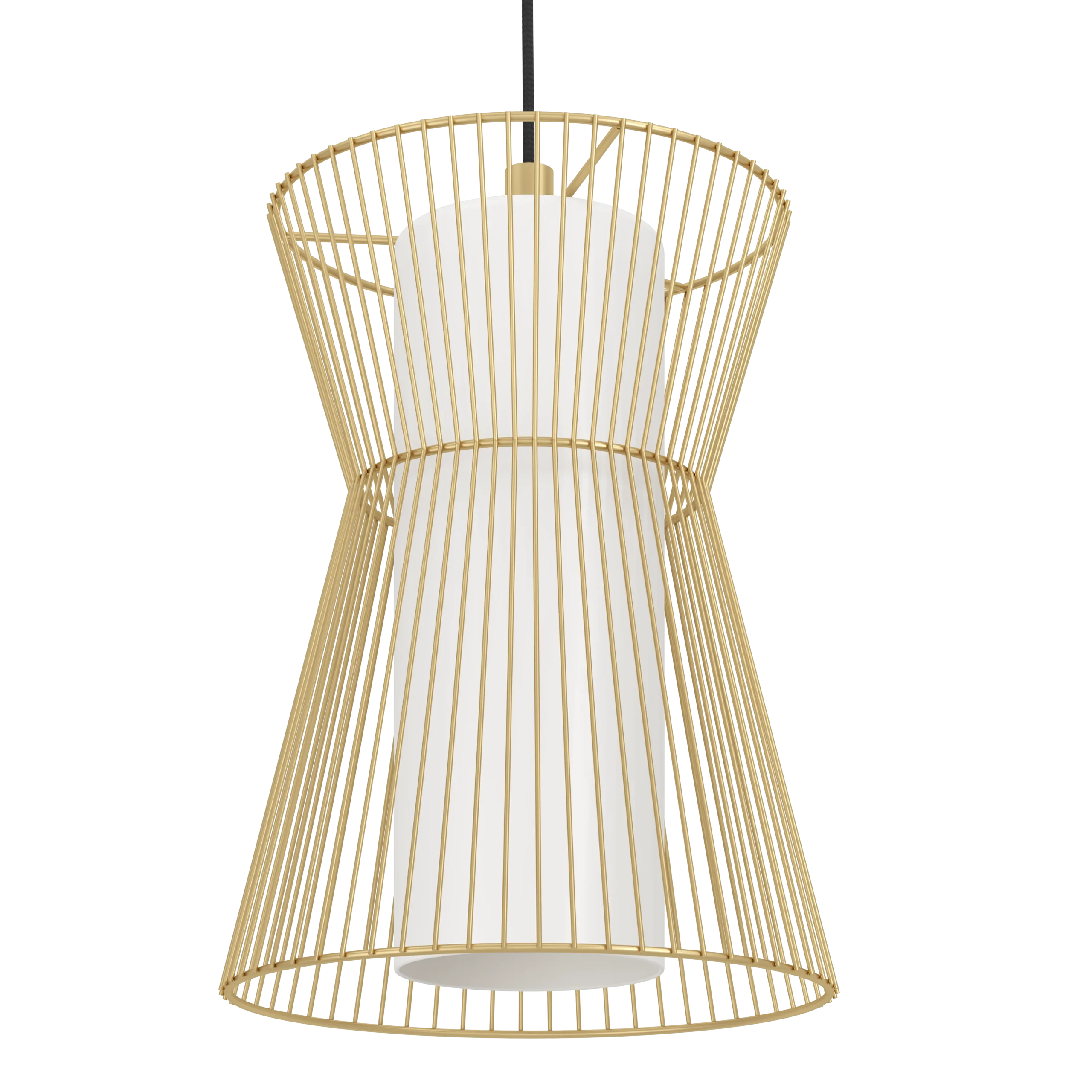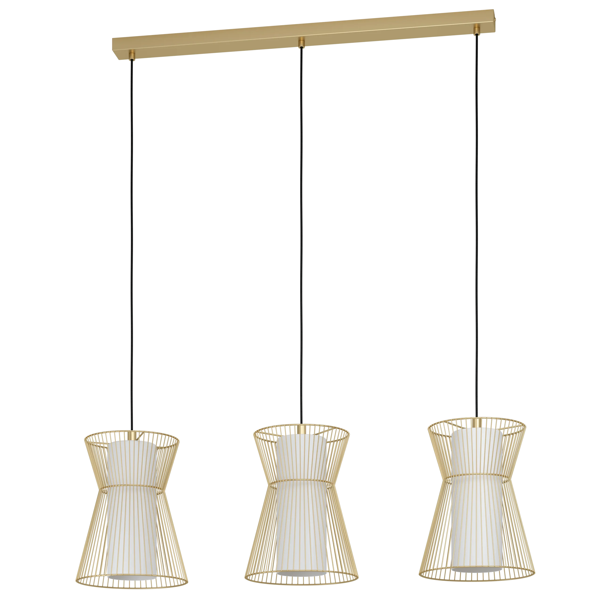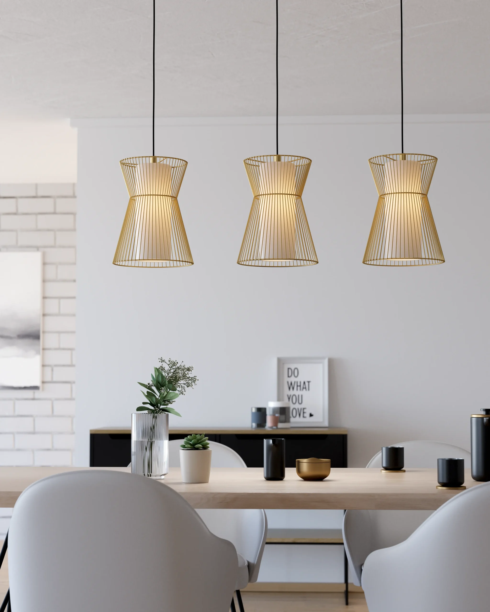 Elegant matte-opal contrast – Warm gold steel with white opal shades for a soft ambient look.