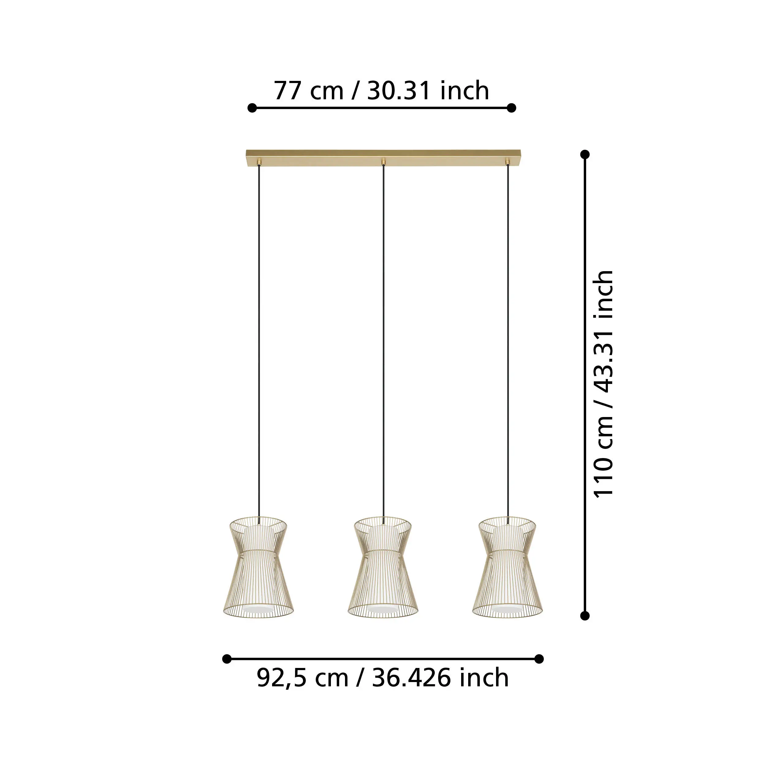 Ideal over islands or tables – 930mm length, 225mm width, 1100mm drop.