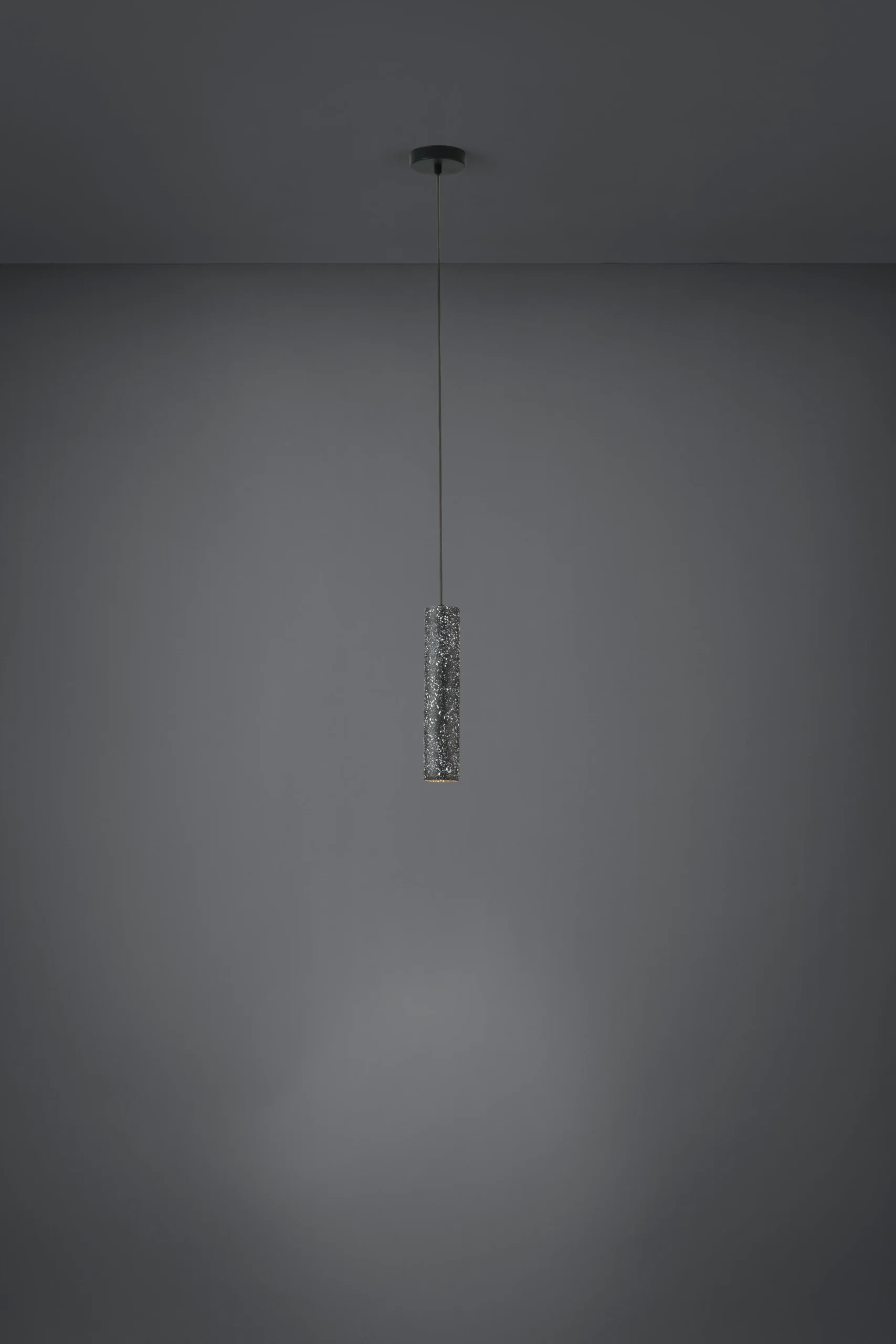 Modern Crystal-Crystal Design: Features a sleek anthracite steel canopy with a terrazzo-patterned glass shade in black and white—blending elegance and texture for stylish indoor lighting.