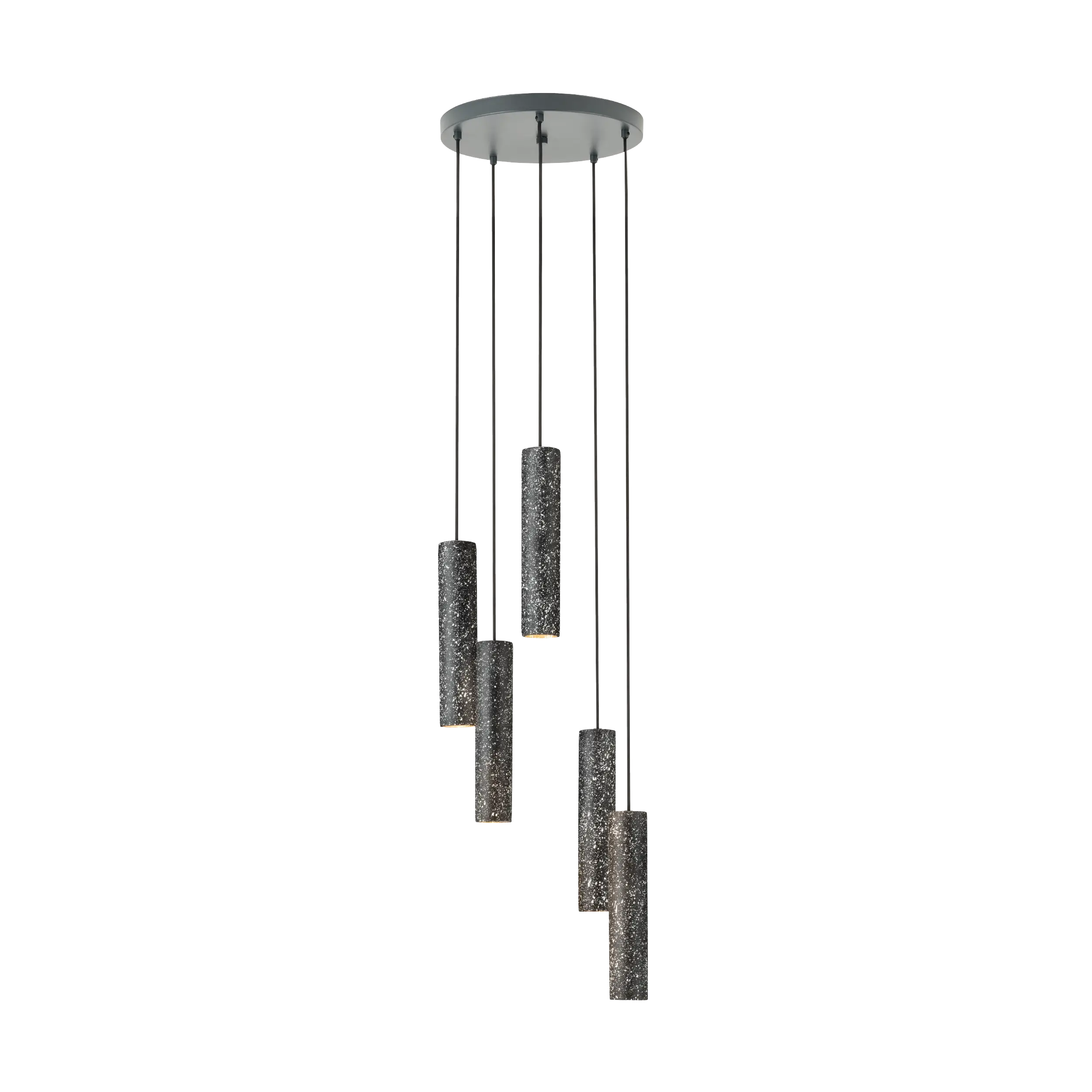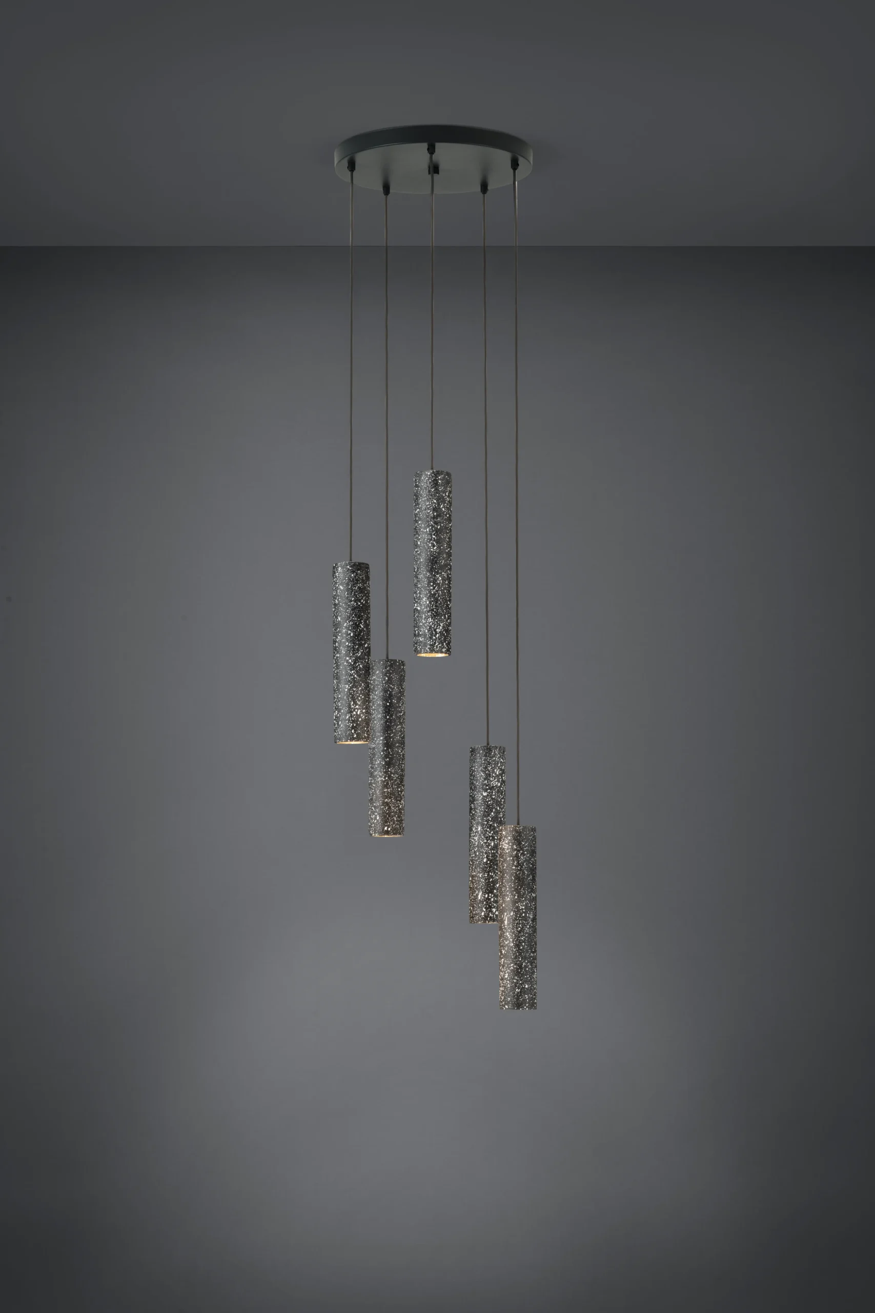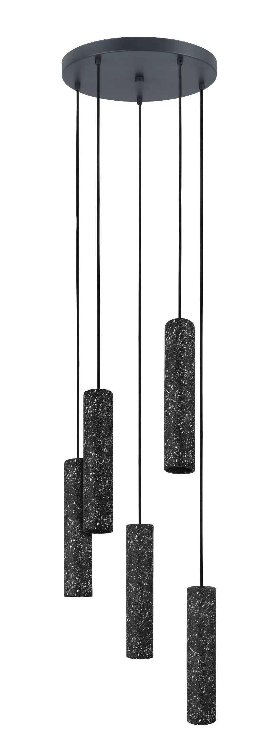 Textured Cluster Design: Elegant terrazzo-patterned glass shades in anthracite black suspended from a matching steel canopy—adds a sophisticated, modern look to any interior.