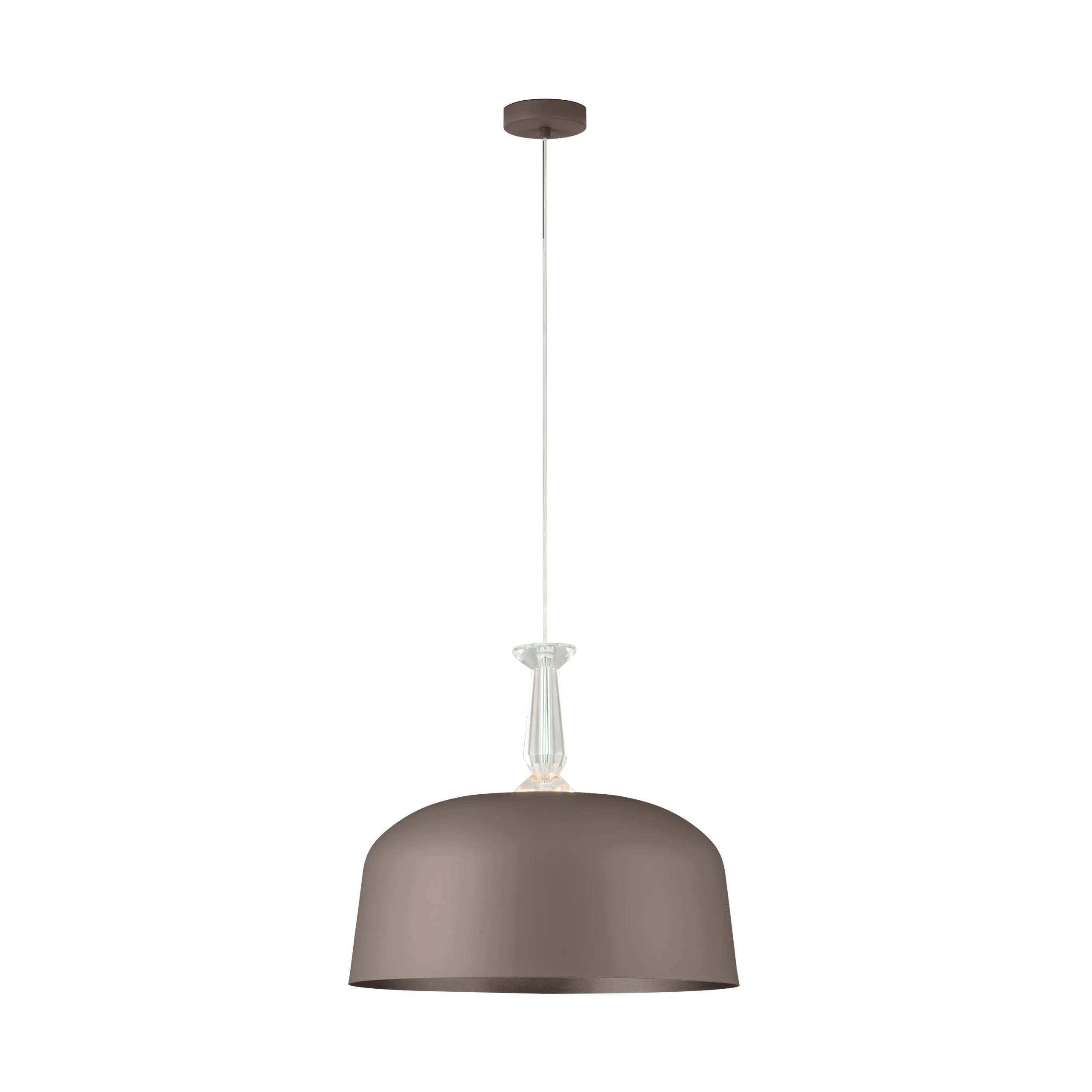 Chic Taupe-Luxe Design: Modern pendant featuring a taupe matte steel shade with an inner cluster of clear crystal elements subtly illuminated through the shade opening—adds refinement to dining rooms, living spaces, or accent areas.