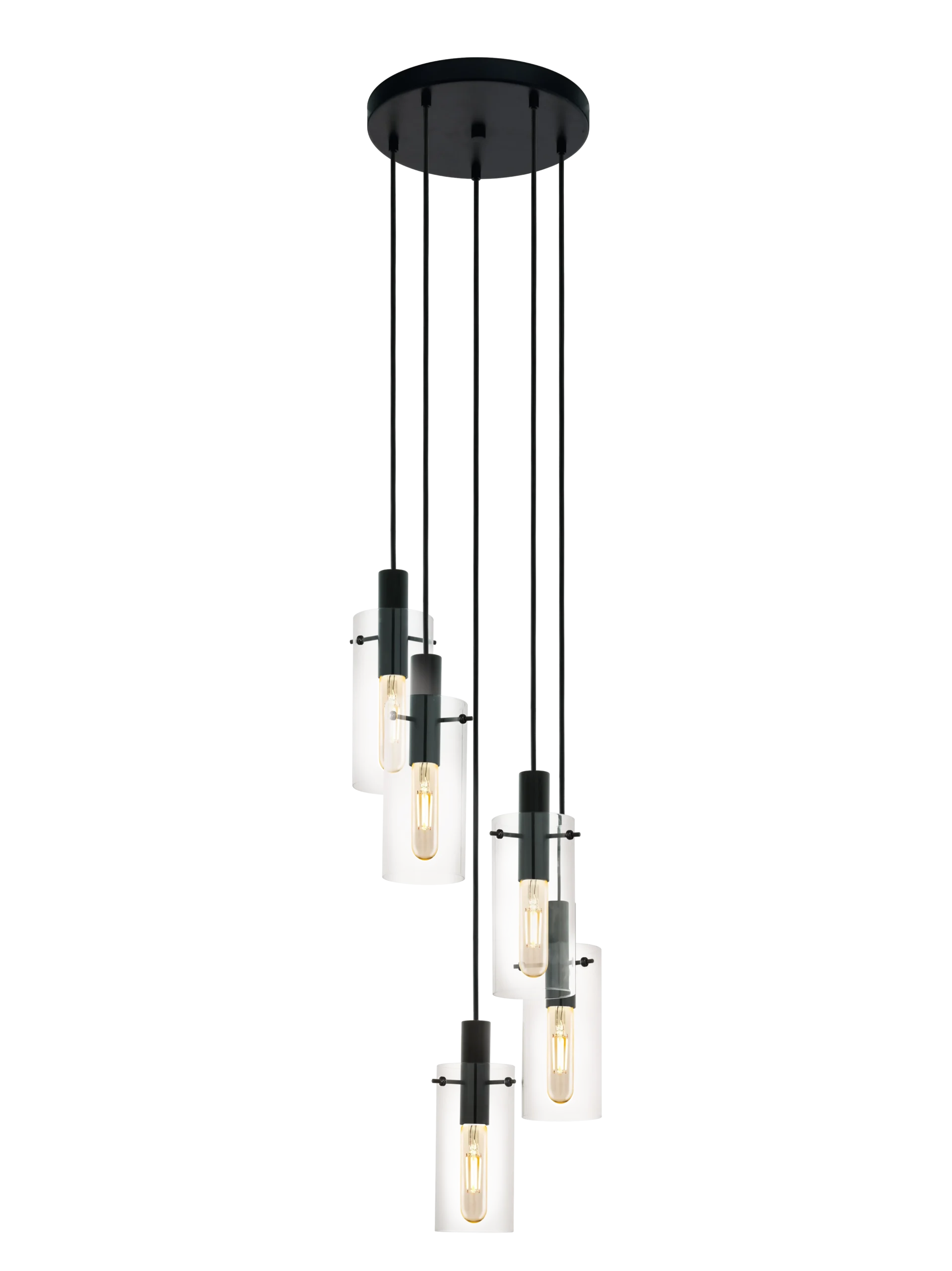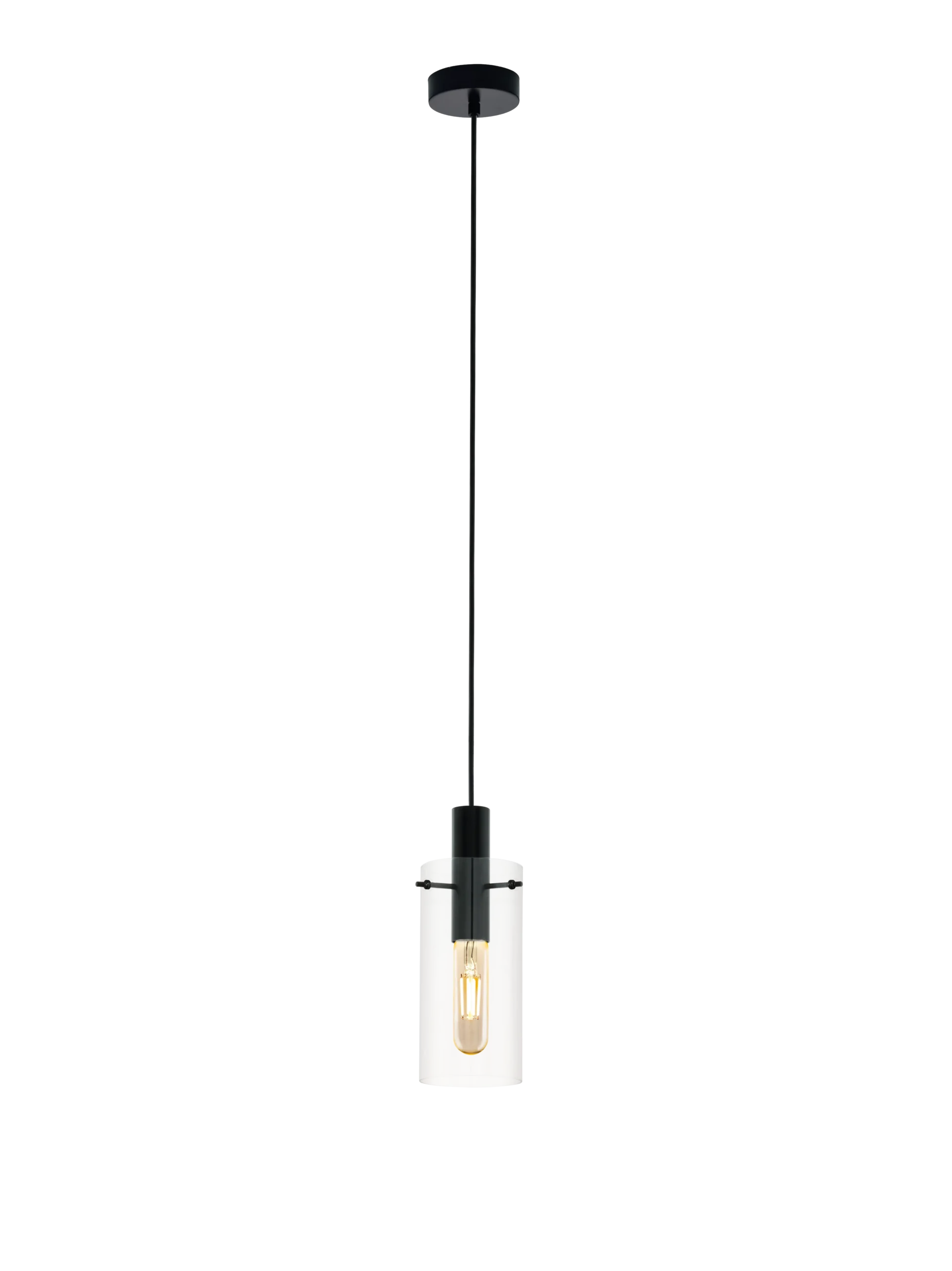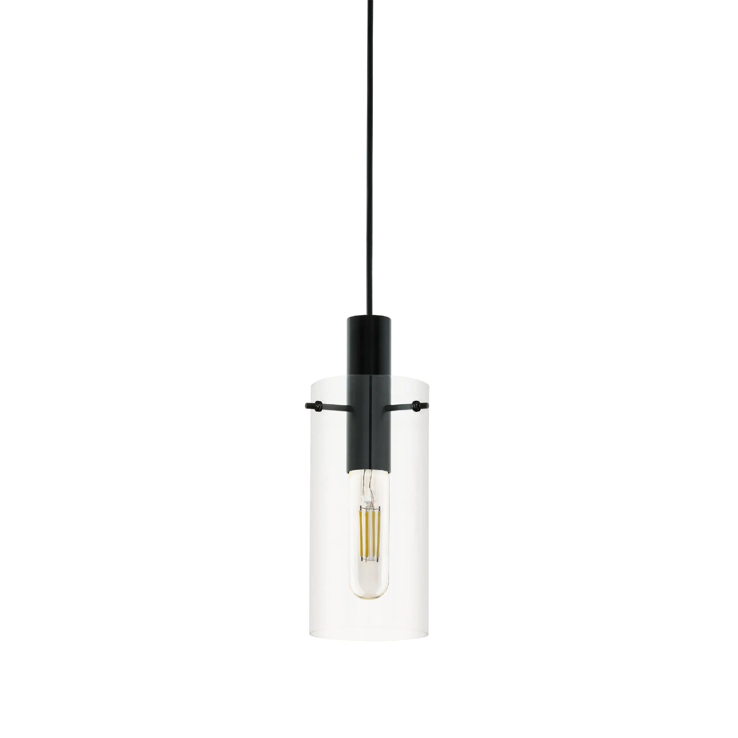 Sleek Industrial Design – Features a minimalist black steel canopy with a suspended clear glass cylinder, exposing the bulb for a contemporary, loft-inspired aesthetic in living rooms, kitchens, or hallways.