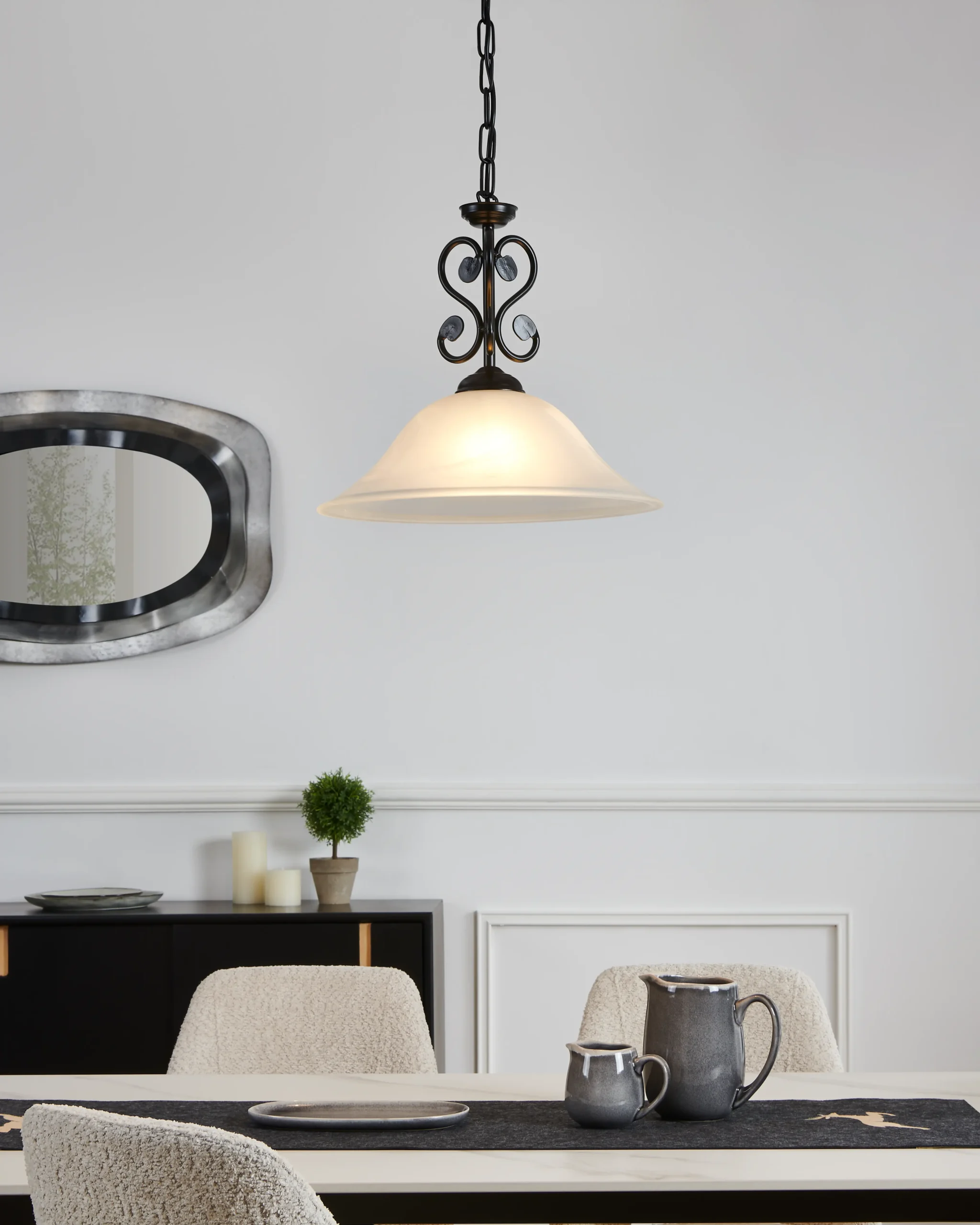 Perfect Fit for Spaces: With a 1100mm drop and 380mm diameter, it’s designed to highlight dining areas, kitchen islands, or cozy corners.