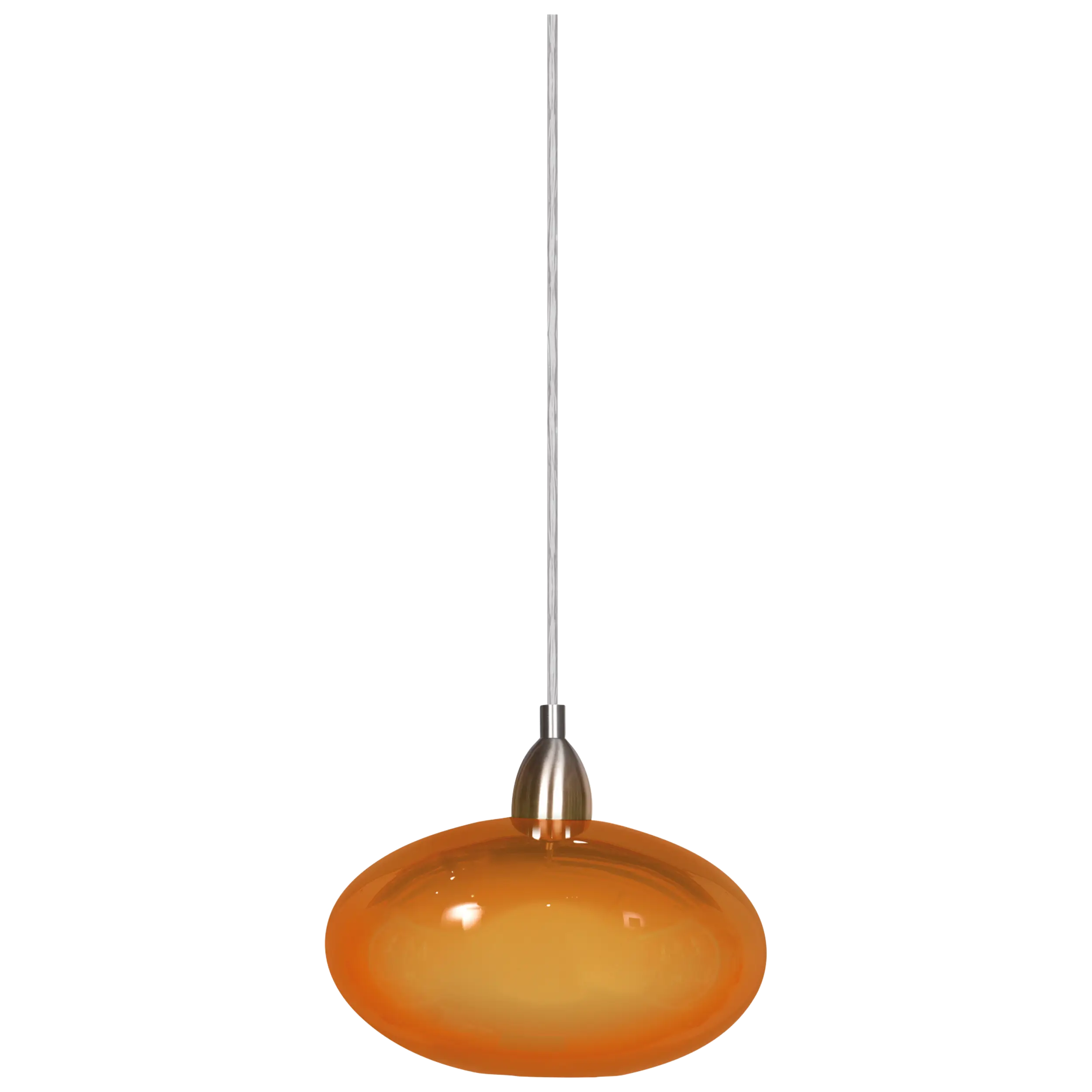 Stylish Two‑Tone Design: Chic satin‑nickel steel canopy suspends a vibrant painted orange glass shade—adds a pop of colour to modern kitchens, dining areas, or living spaces.